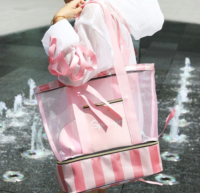 Новинка 2019, женская сумка для плавания, сетчатые сумки, сумки для влажного и сухого плавания, Сетчатая Сумка для бассейна мешочек для подарков, спортивные прозрачные сумки в полоску