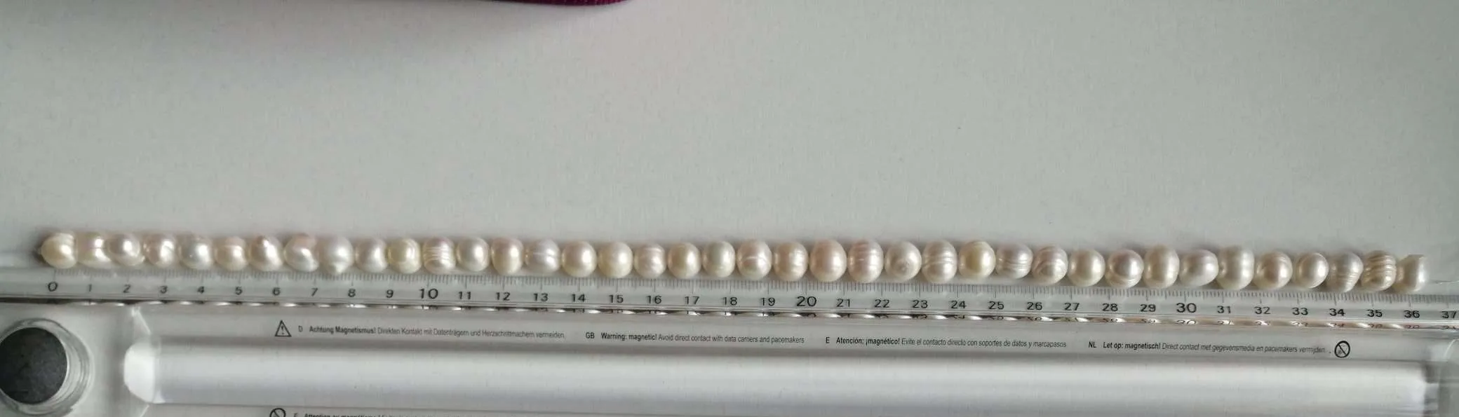 Жемчуг не круглый, они совершенно неровные, в комментариях они сказали, что они очень круглые, поэтому я взял фиаско, и они тоже больше Меньше, чем я заказал, 11- 12, которые я заказал, 10 мм, а 8-9 мм-7 мм, я совсем не Счастлив.