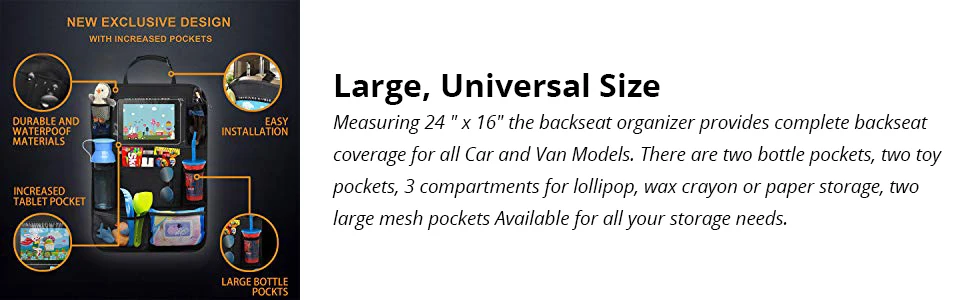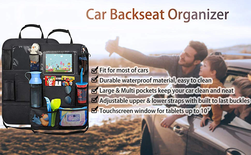Храните свой автомобиль в разных отсеках для хранения, включая сетчатые карманы для хранения вещей, хранения iPad или планшета, книг, журналов, CD, телефонов, бутылок, напитков, салфеток, салфетки, закуски, фрукты, зонтик, ручка и многое другое.