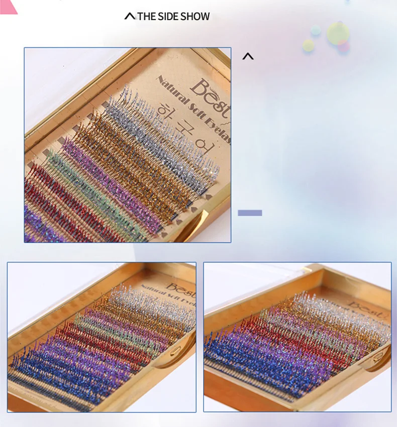 Ресницы для наращивания из искусственной норки, цветные Сияющие накладные ресницы, 7 цветов, ярко-розовые, серебристые