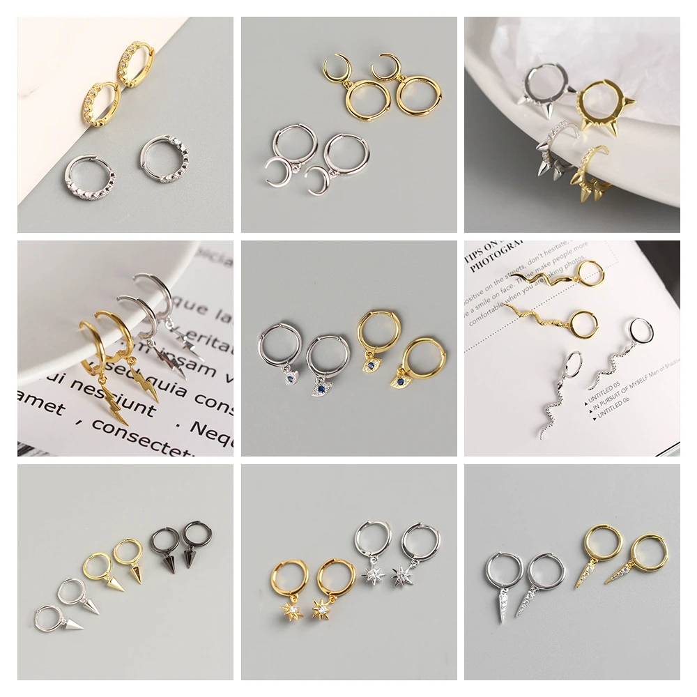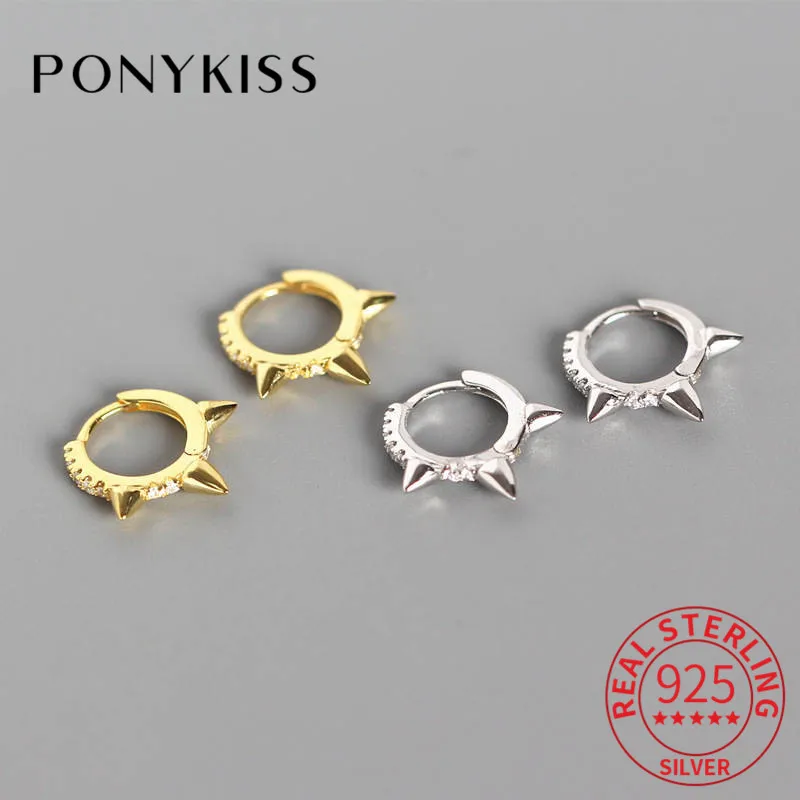 Серьги-кольца из серебра 925 пробы с фианитами и заклепками