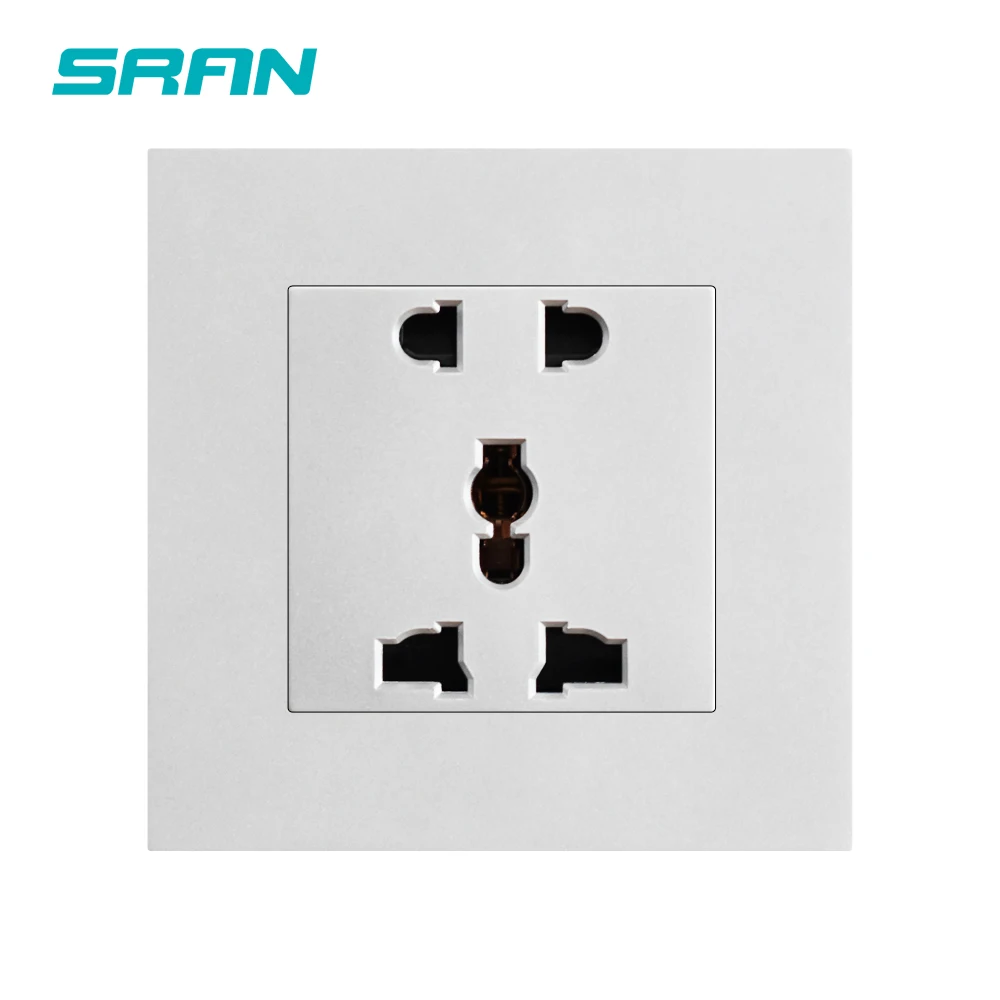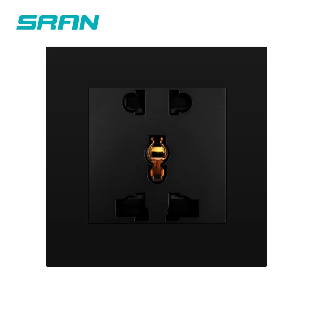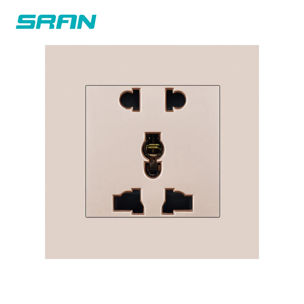 Многофункциональная настенная розетка SRAN с 5 отверстиями, универсальная розетка 220 В, 13 а, 86 мм * 86 мм, белаячернаяЗолотая панель из поликарбоната