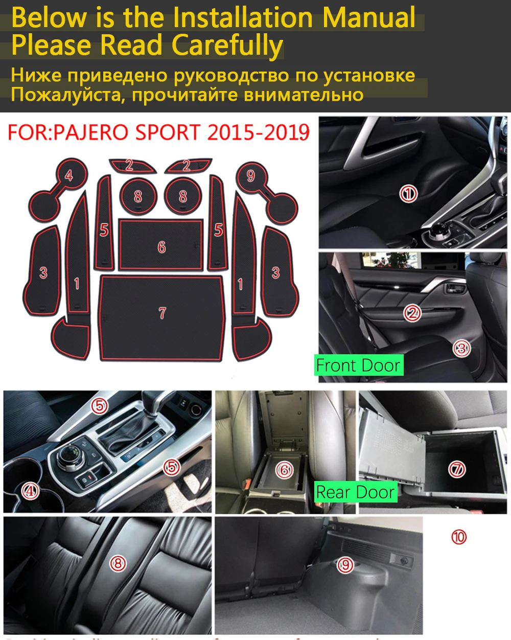 Противоскользящий резиновый коврик для подстаканника, дверной паз для Mitsubishi Pajero Sport Montero Shogun 2015 2019 2016, аксессуары, автомобильные наклейки