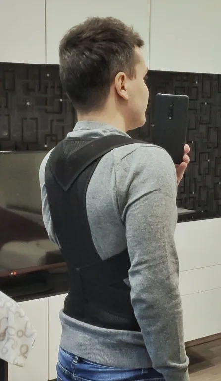 Прекрасный корректор осанки за свои деньги! Осталась довольной покупкой, держит хорошо, сутулиться в нем тяжело. У меня рост примерно 164 см, вес почти 50 кг. Взяла размер S и угадала. Липучки необычные, но очень удобные, хорошие. Внутри вшиты две тонкие длинные во всю спину пластины. Ношу 2 часа в день, очень нравится.