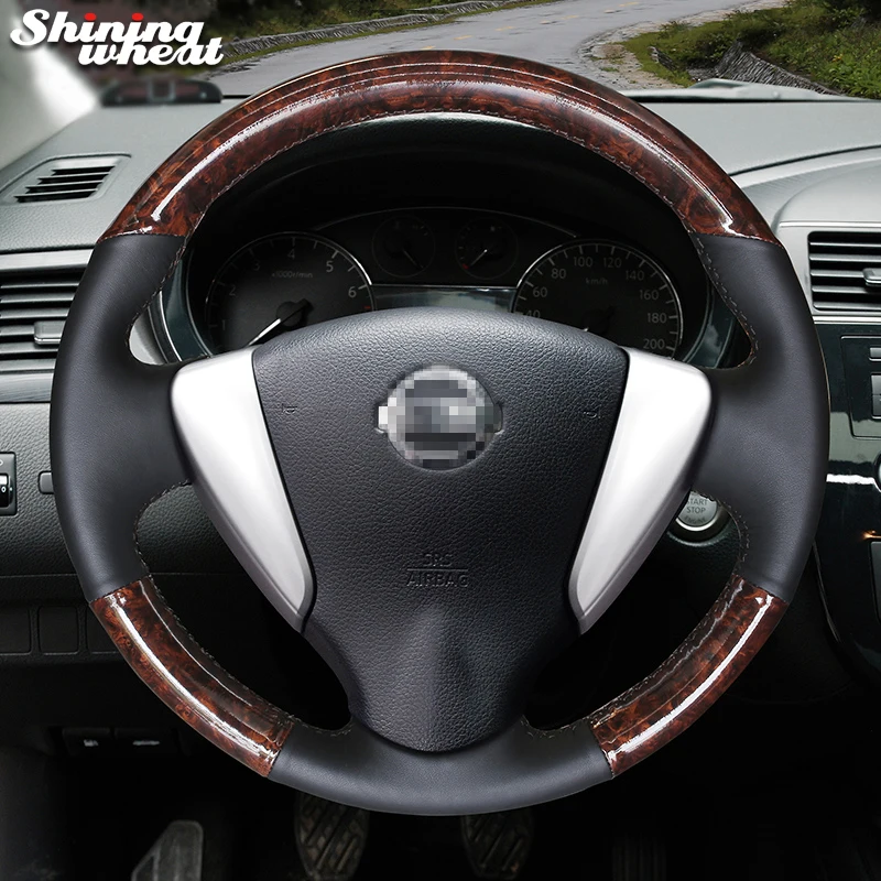 Чехол на руль из искусственной кожи, блестящий черный, пшеничный, Углеволокно, для Nissan Tiida Sylphy Sentra Versa Note 2014-2017