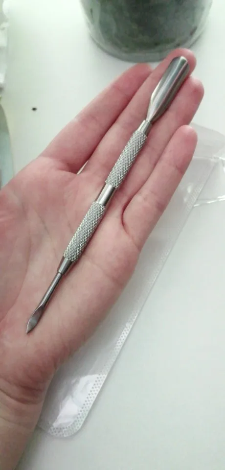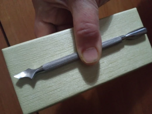 Очень удобный инструмент, достаточно большой, пригодится и для педикюра.Острый. В объединенном заказе прибыл достаточно быстро.