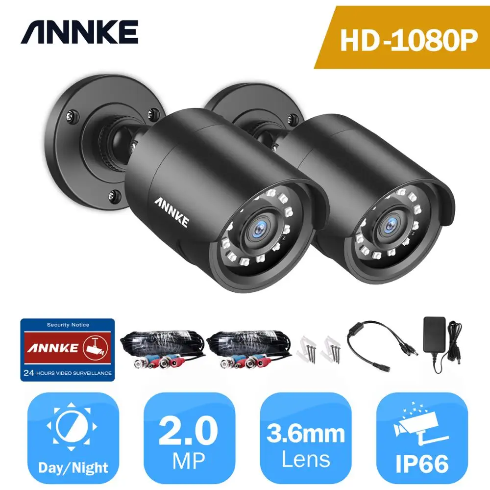 Камера видеонаблюдения ANNKE, 2 шт., 1080P, 2 МП, IP66