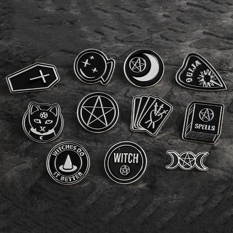 Европейские, средневековые, черные, волшебные булавки, религиозные, готические, панковские броши, значки, сумка, эмалированные булавки, ювелирные изделия, подарки для друзей