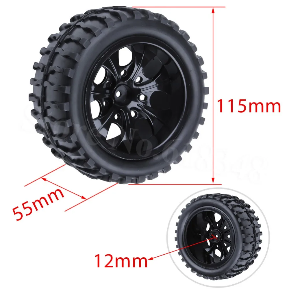 Примечание:Шина не приклеена на обод. Он установлен на ободе с вставленной пеной Шина Материал:Резина; Материал обода колеса: качественный нейлон пластик, не легко сломать Шины Размеры: Снаружи Диаметр4,52 ''(115 мм) Ширина: 2,17'' (55 мм) Привод с шестигранной головкой:12 мм (не входит в комплект)/диаметр отверстия оси: 4 мм 100% новый бренд, произведенный HobbyPark, хорошо сделанный и прочный