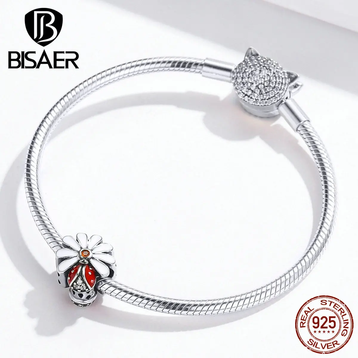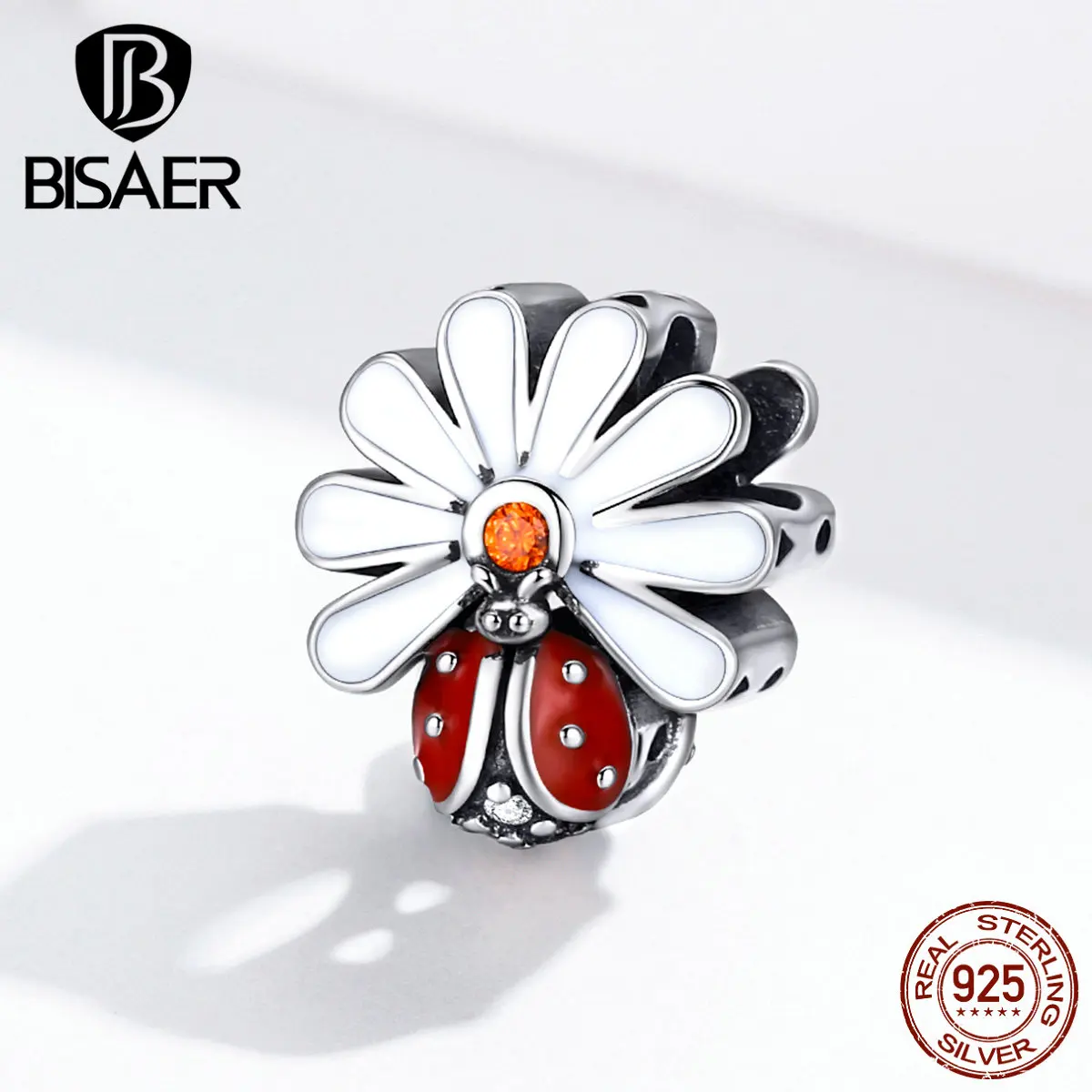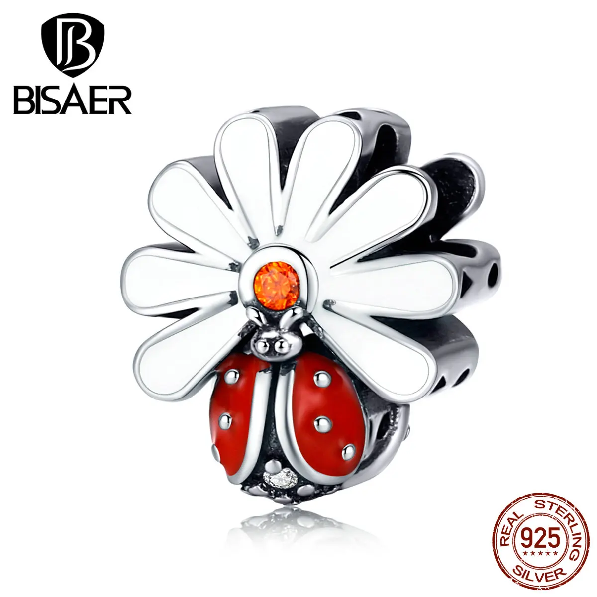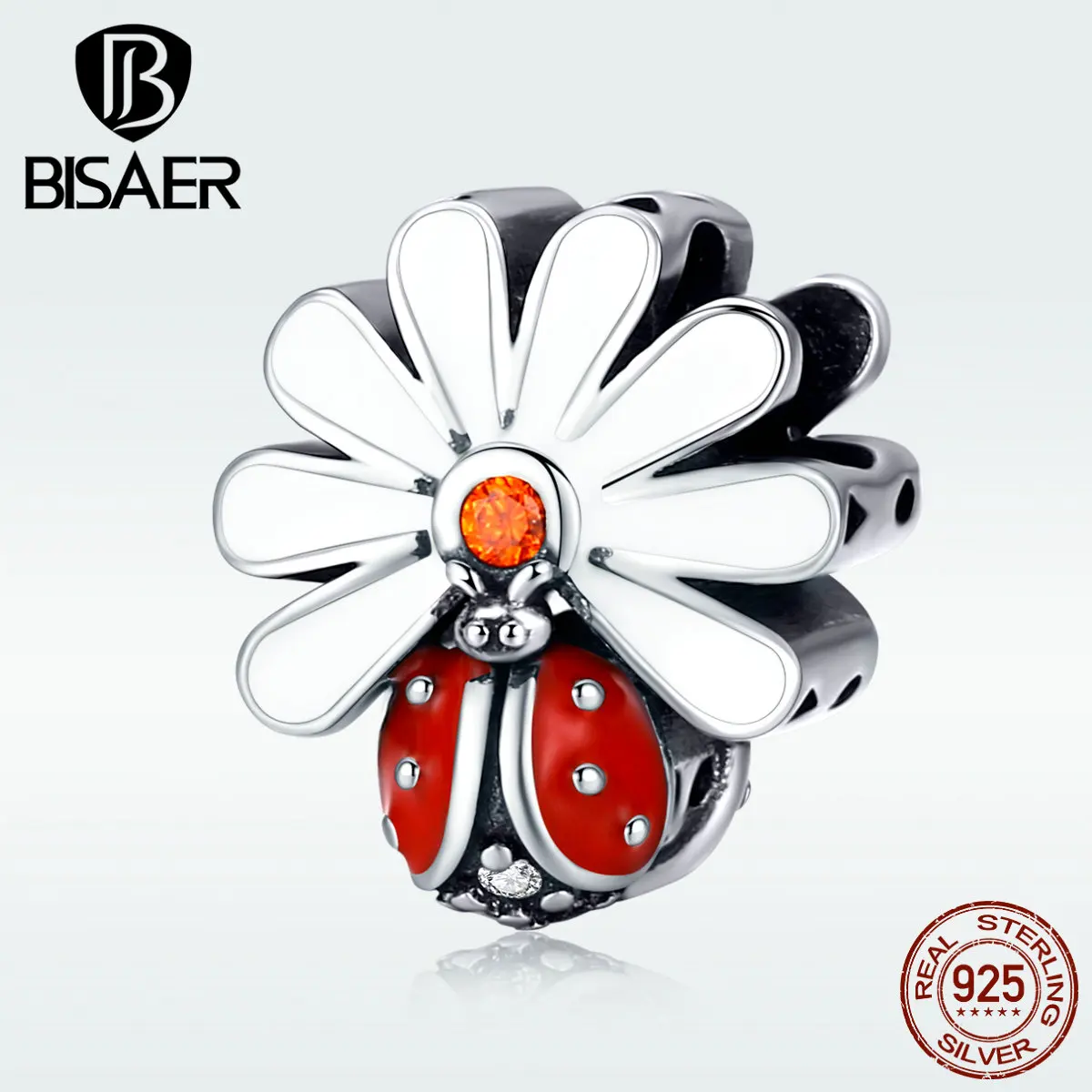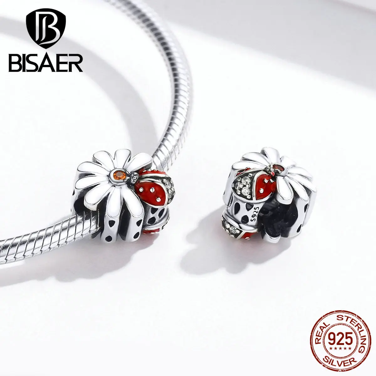 Бусины божья коровка бисер 925 пробы серебряные белые цветы и бусины божья коровка Подвески подходят для изготовления браслетов своими руками ECC1276