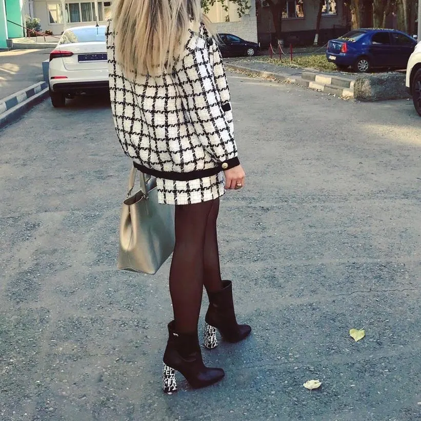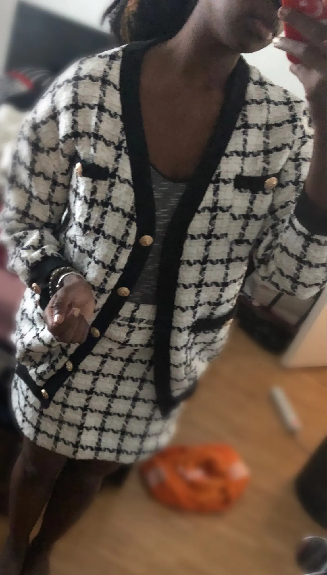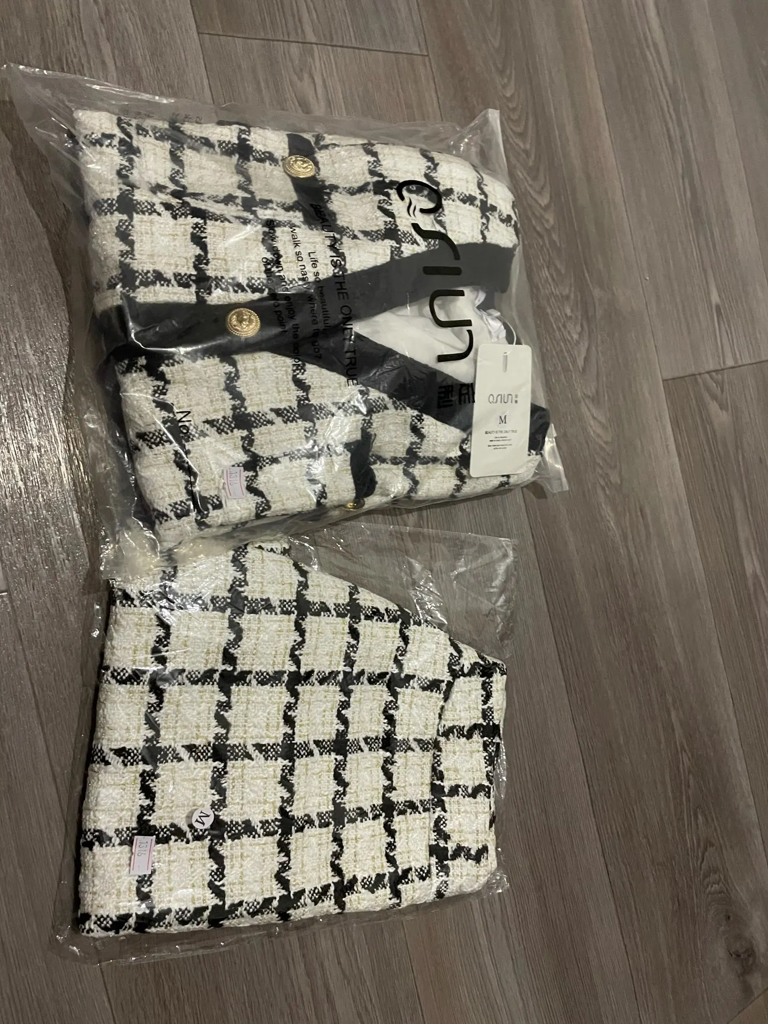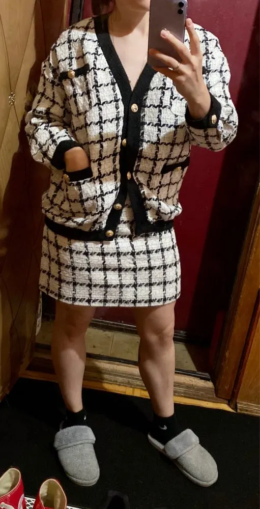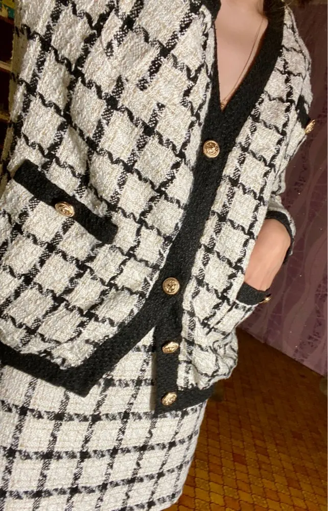 Женский твидовый шерстяной костюм, пиджак с длинным рукавом и мини-юбка, винтажный комплект из 2 предметов, Осень-зима 2021
