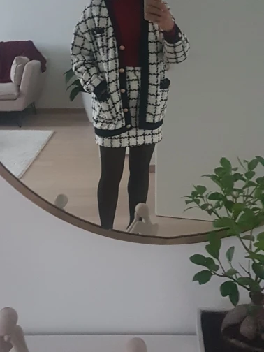 Отличное качество. Ткань и детали такие же, как на картинке. Юбка такая маленькая, я обычно использую M в одежде, и этот не подошел мне, но куртка красивая и негабаритная. Получил посылку в течение 3 недель