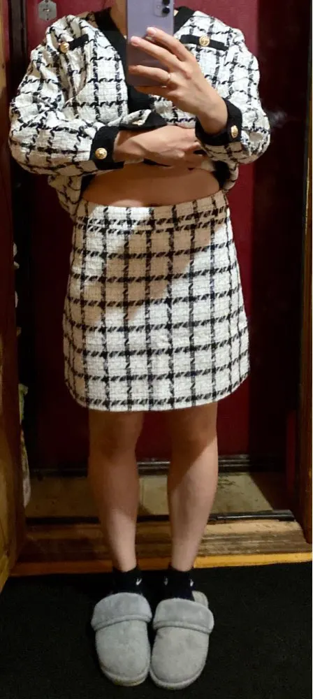 Материал действительно толстый, единственный низ в том, что юбка немного коротковата для меня (162 см), но это будет нормально с некоторыми колготками.