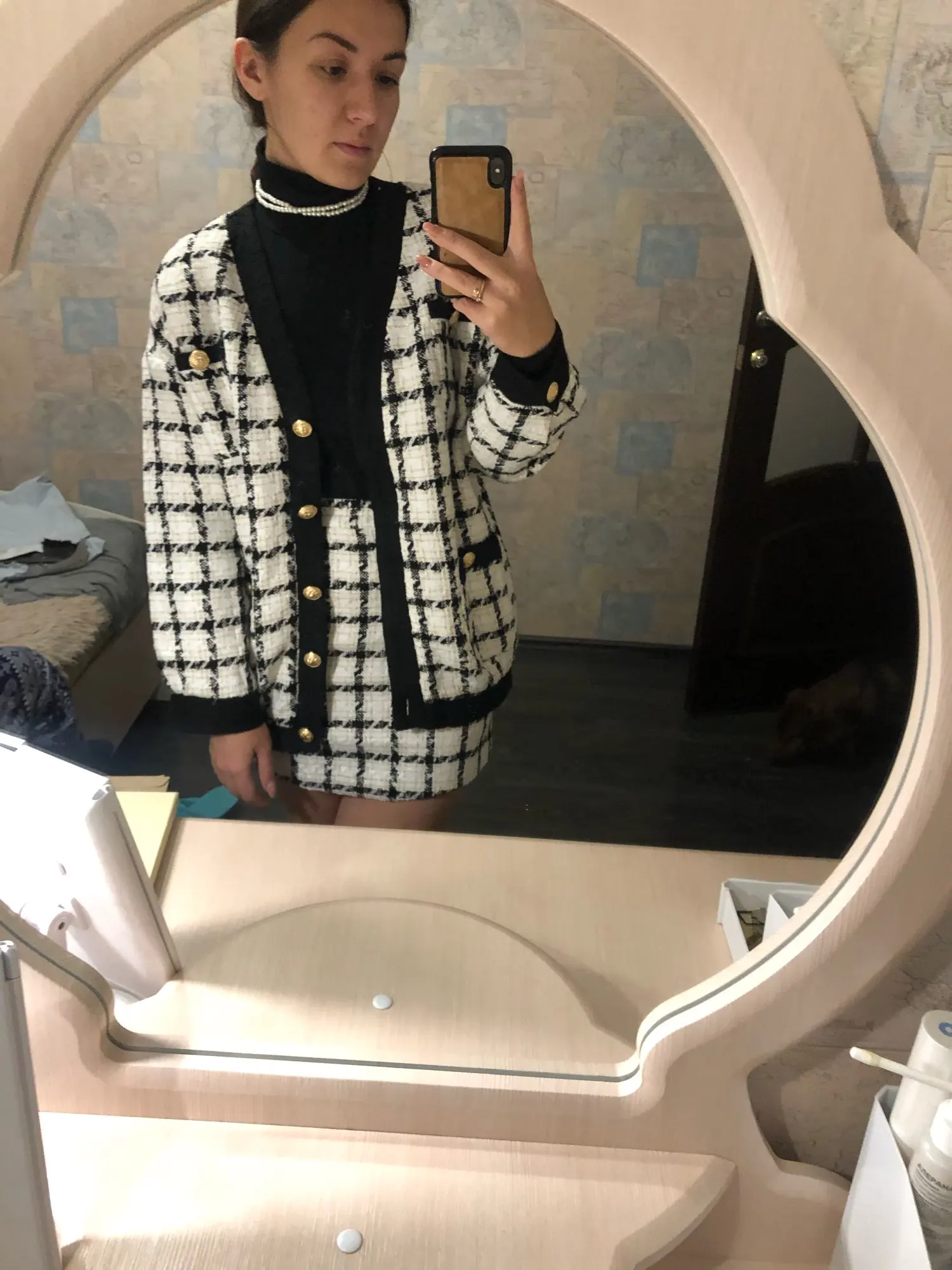 Очень хорошо, только юбка немного маленькая и короткая, а двойная куртка немного дешевая, но вид такой же, как на фото