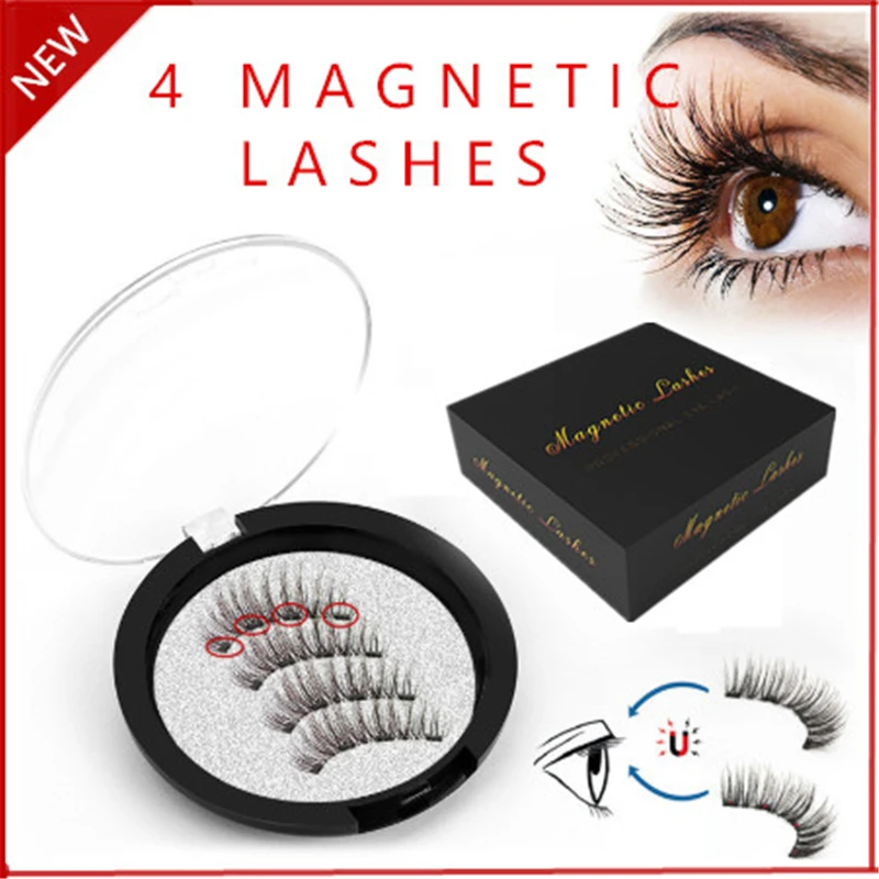 Магнитные ресницы с 4 магнитами ручной работы, 3D Магнитные накладные ресницы для наращивания, магнитные ресницы с подарочной коробкой-24P-4