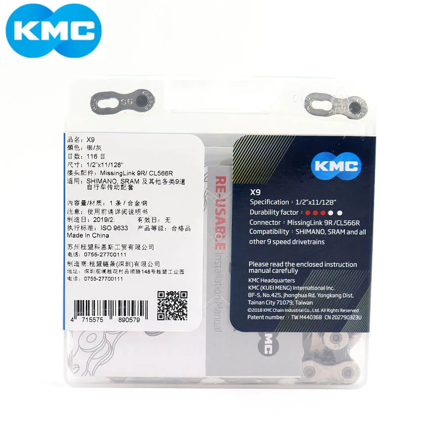 Цепь для горного велосипеда, 9, 18, 27 скоростей, 116L, KMC X9, X9