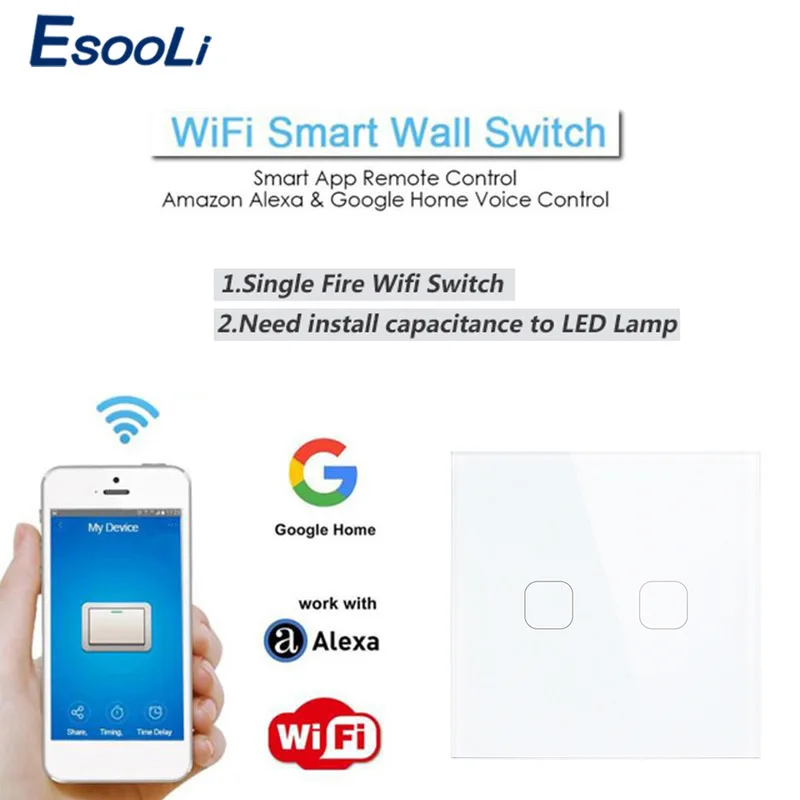 Esooli EUUK wifi Smart 2 банда сенсорный выключатель приложение беспроводной дистанционный светильник настенный сенсорный переключатель работа с AlexaGoogle Home