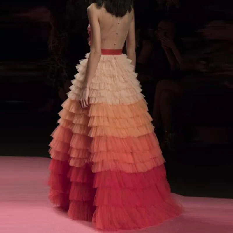 Женские вечерние юбки в пол, красивые смешанные цвета, с высокой талией, модные, многослойные, тюлевые, на молнии