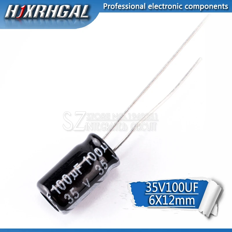 1 шт., высококачественный электролитический конденсатор 35 в 100 мкФ 6х12 мм 100 мкФ 35 в 6,3 х12, hjxrhgal