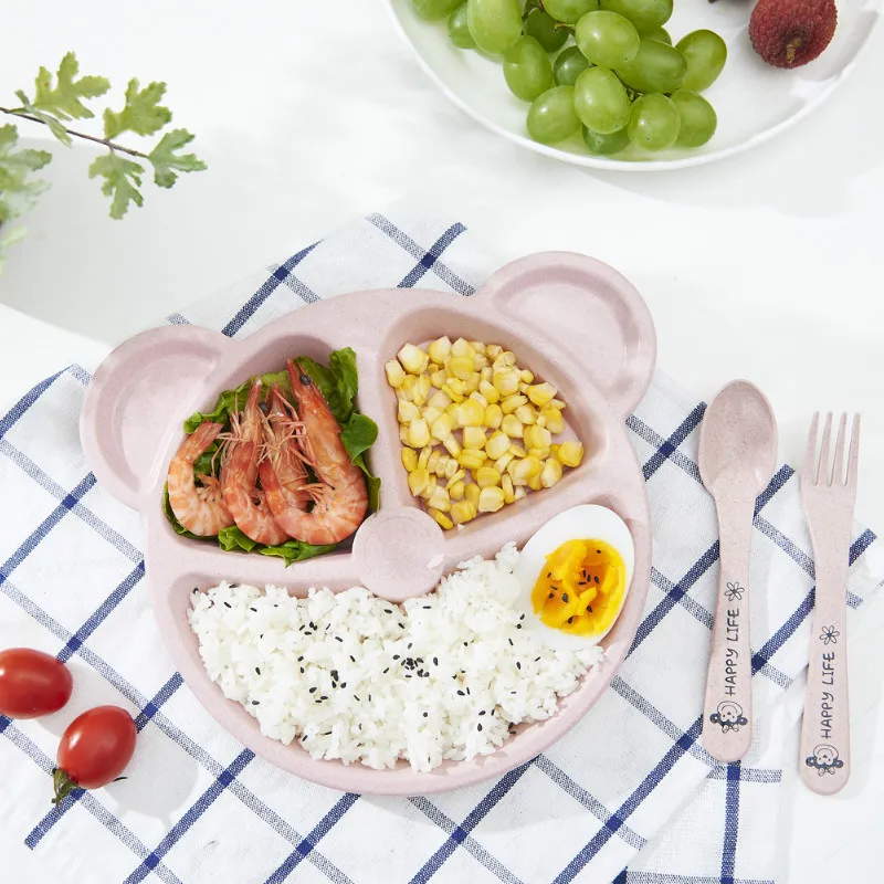 3 шт.компл. детская миска + ложка + вилка столовая посуда с мультяшным медведем детская посуда столовая посуда не горячая тренировка столовая тарелка