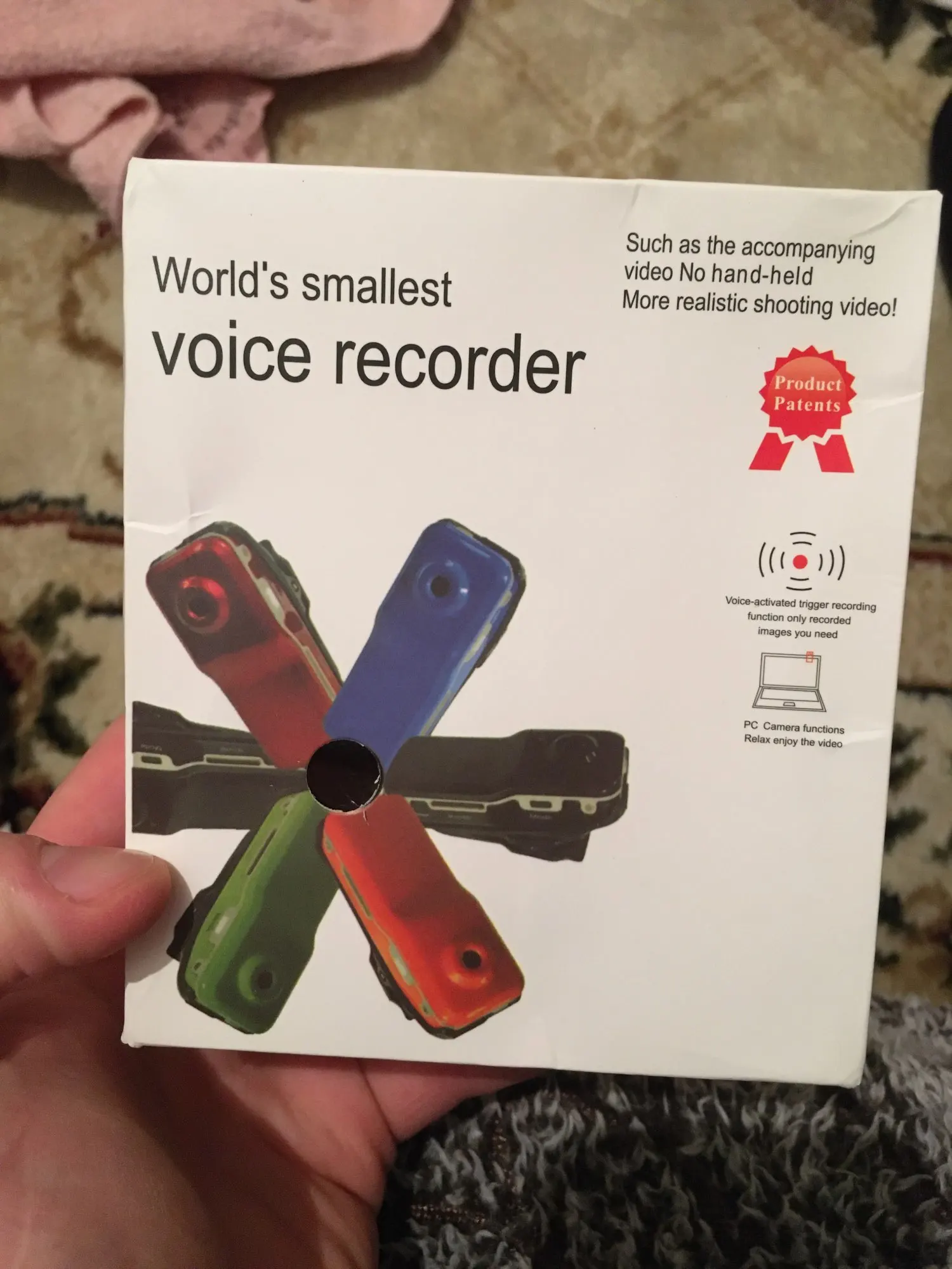 Камера - полное Г. никаких двух часов записи, разряжается в ноль через 10-15 минут. Микрофон очень слабый. Объектив смотрит под 45° влево. Зато светится при работе, как новогодняя ёлка.Качество изображение очень среднее, в сумерках - плохое. Не рекомендую.
