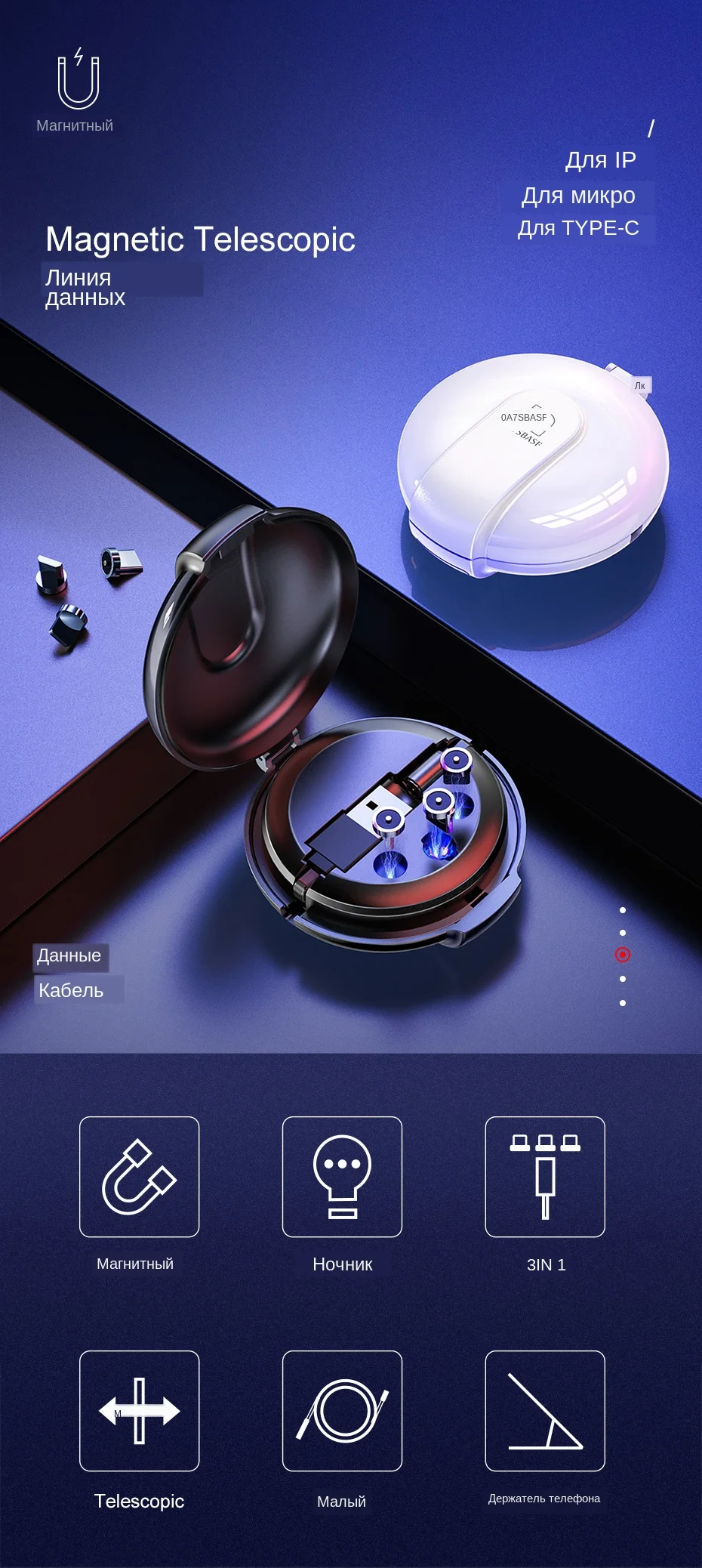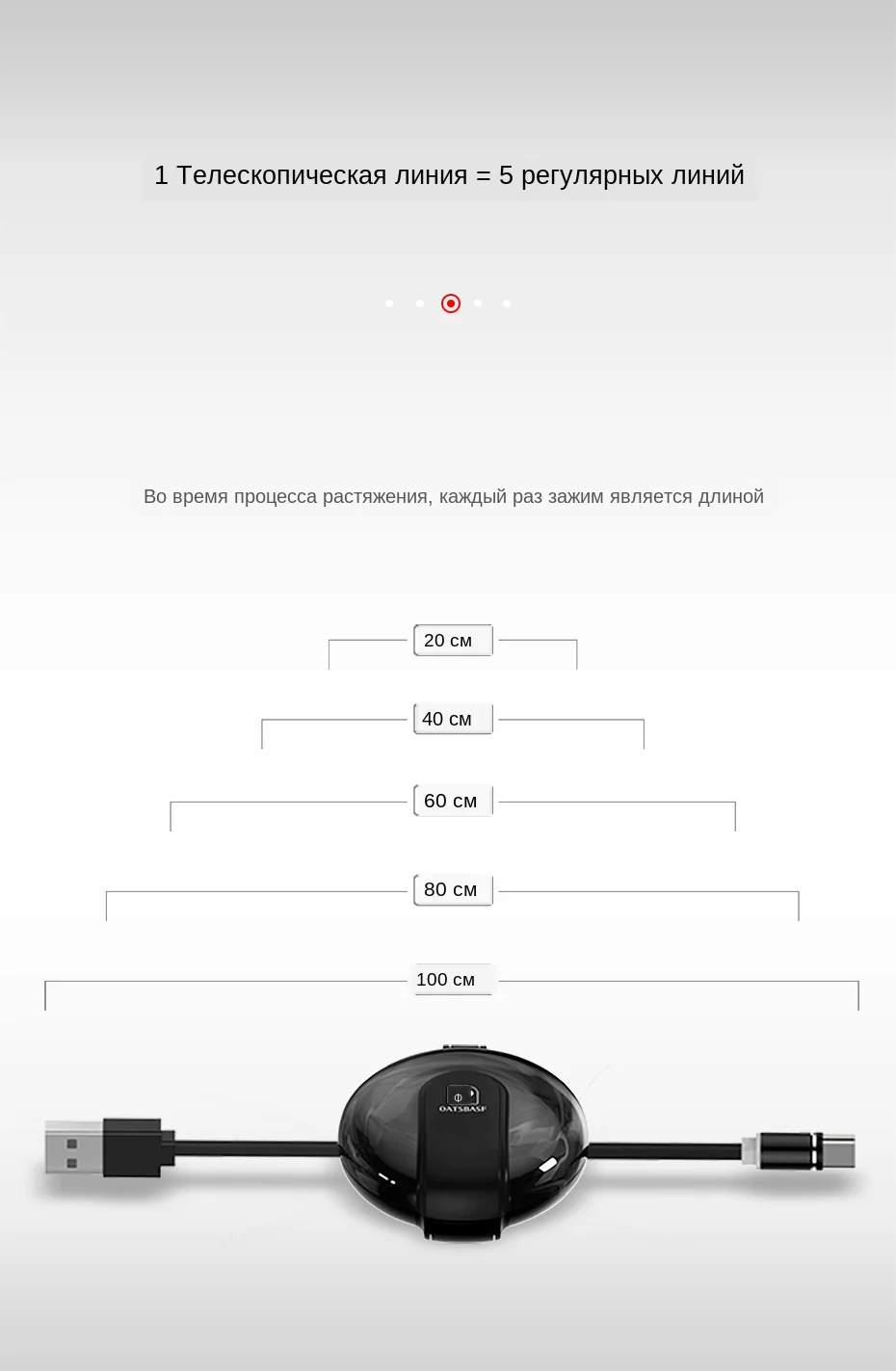Oatsbasf 3 в 1 USB Магнитный кабель Type C Micro для iPhone Huawei Samsung Xiaomi кабель для быстрой зарядки Выдвижной кабель