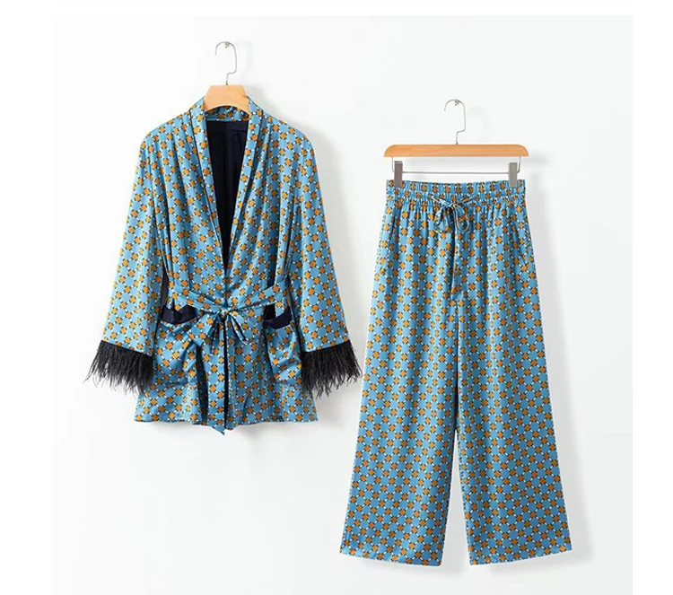 Пиджак-кимоно Женский с рукавами с перьями и широкими штанинами, мо...