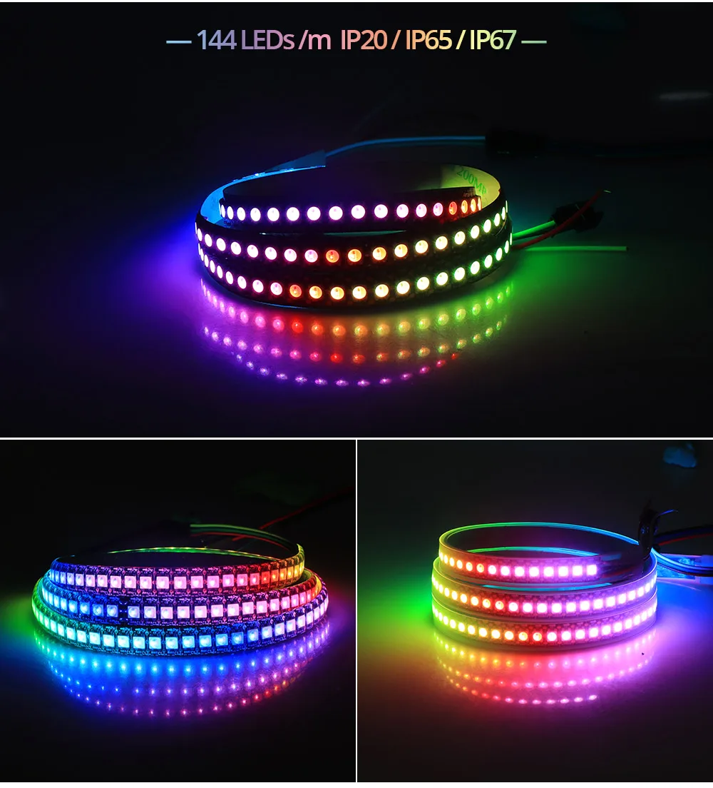Светодиодная лента WS2812b SK6812 1 м5 м, 3060144 пикселейсветодиодым, умная Светодиодная лента RGB RGBW RGBWW, чернаябелая печатная плата IP30IP65IP67, 5 в постоянного тока