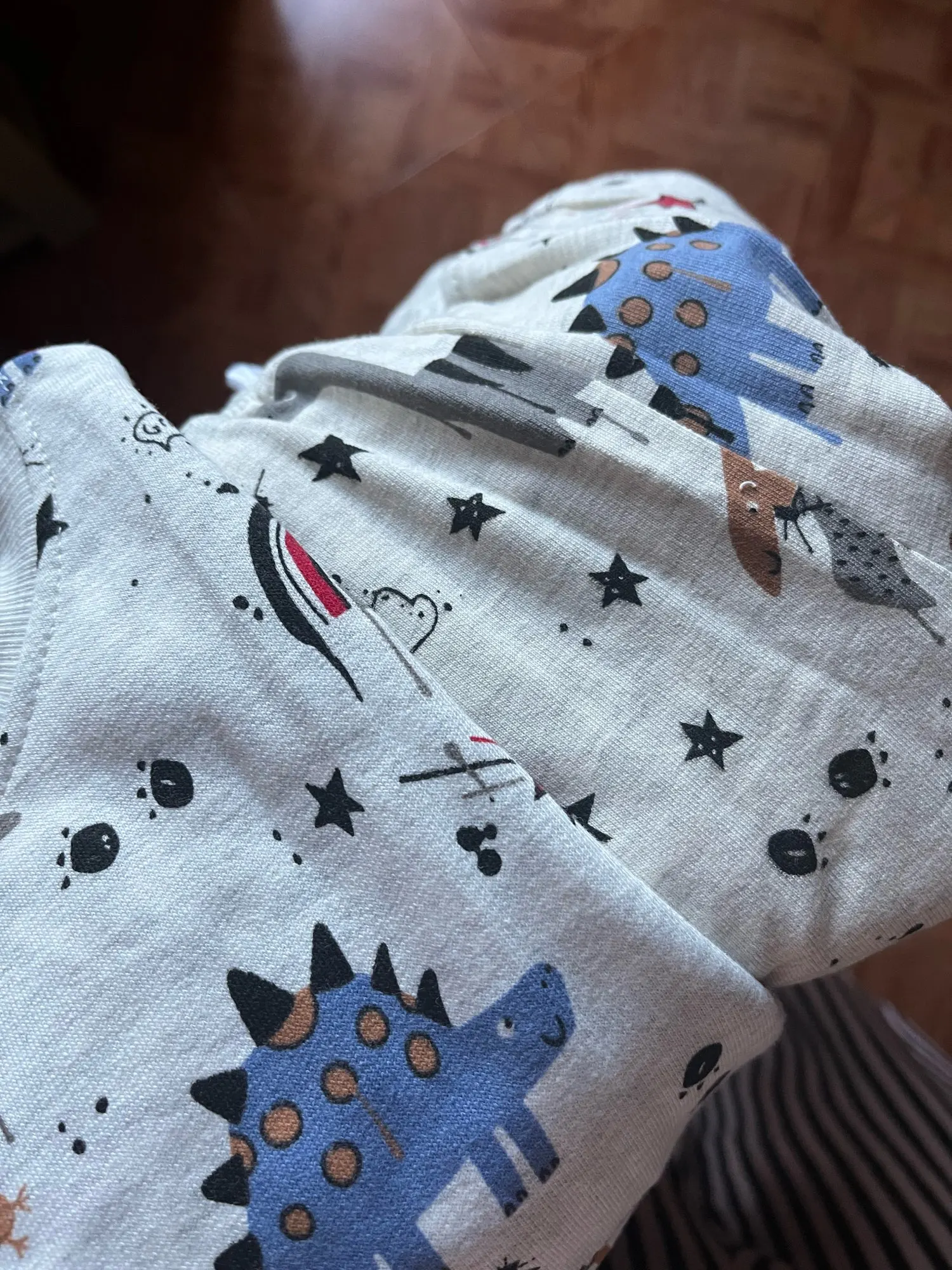 Костюм прибыл в срок. С продавцом не общалась. Оттенок ткани на брюках и кофточке отличается- штаны более бежевые. Футер, хлопок. На кофте петли крупнее и более рыхлые, на штанах- сами петли мельче, но их плотность выше. Видимо, ткань из разных партий. На ребёнка 100 см с хорошим запасом.