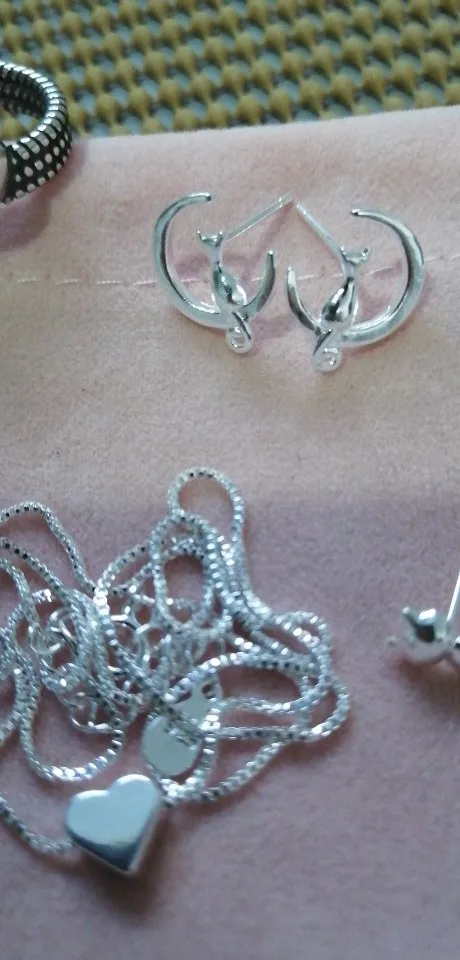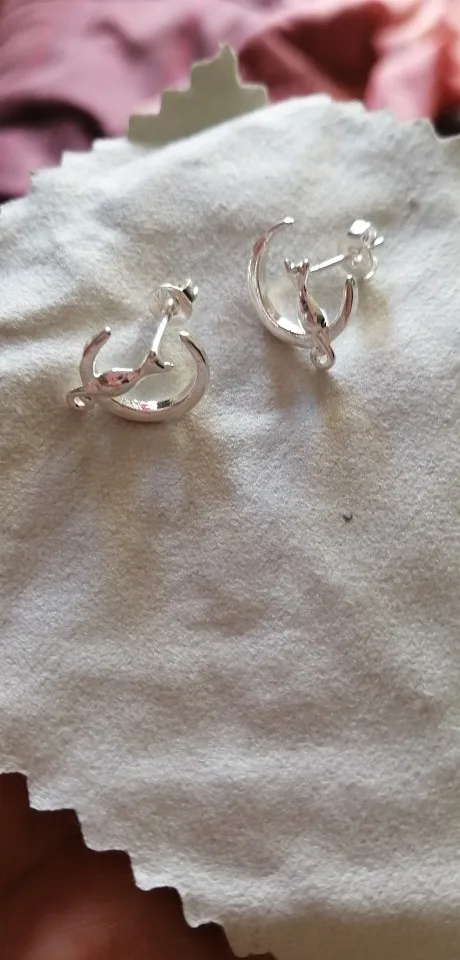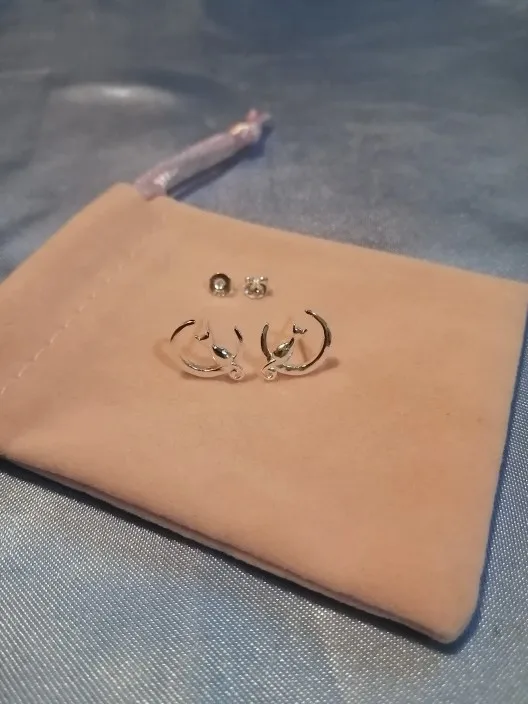 Форма изделия как на картинке, но только застежки на спине серебристые. У серег нет маркера 925 пробы. Заказал 2 пары, в каждой паре одна из сережек поставляется с матовой/матовой поверхностью, другая блестящая.