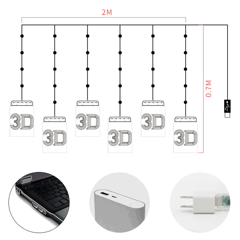 2 м светодиодный Сказочный светильник s USB Power 3D светильник для...