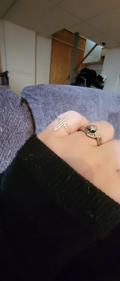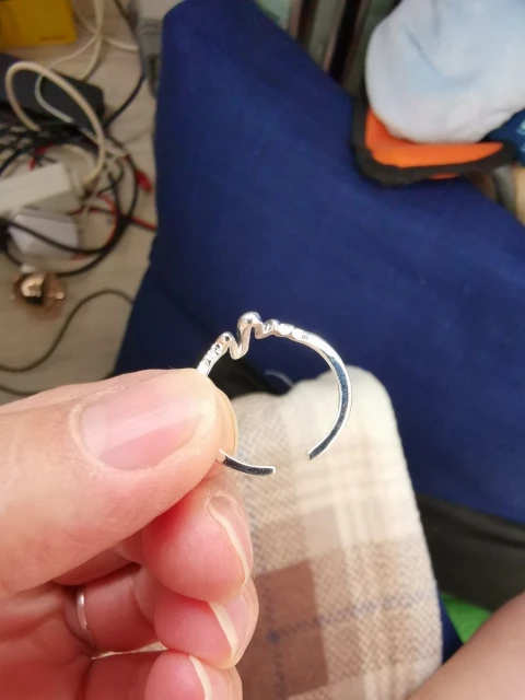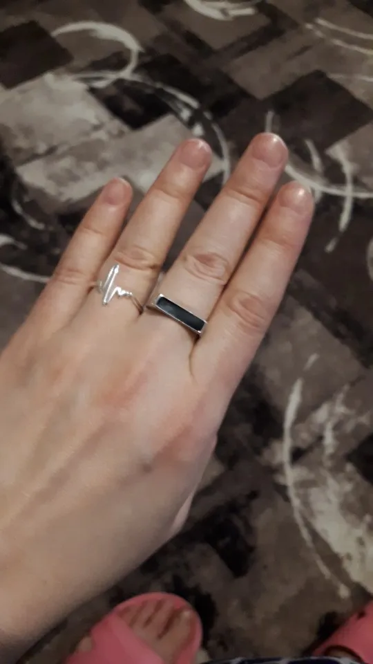 Колечко красивое, тонкое, но маленькое, хоть и с изменяемым размером. С пухлыми пальцами как у меня подойдёт скорее на безымянный и мизинец. Не серебро 925 пробы, хотя проба стоит. Знаю по личному опыту. Предыдущее кольцо от этого продавца ( на фото на безымянном пальце) в виде стрелочки, после 12 дней ношения потускнело, потемнело и в некоторых местах даже порозовело, значит это скорее всего медь покрытая серебром. Но я знала что беру и за такие-то деньги... Хотя продавец сказал что серебро... Доставка в Германию 28 дней.