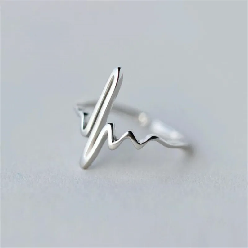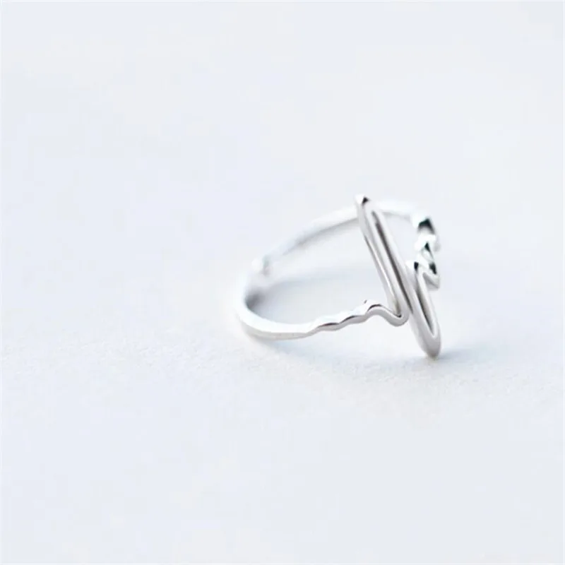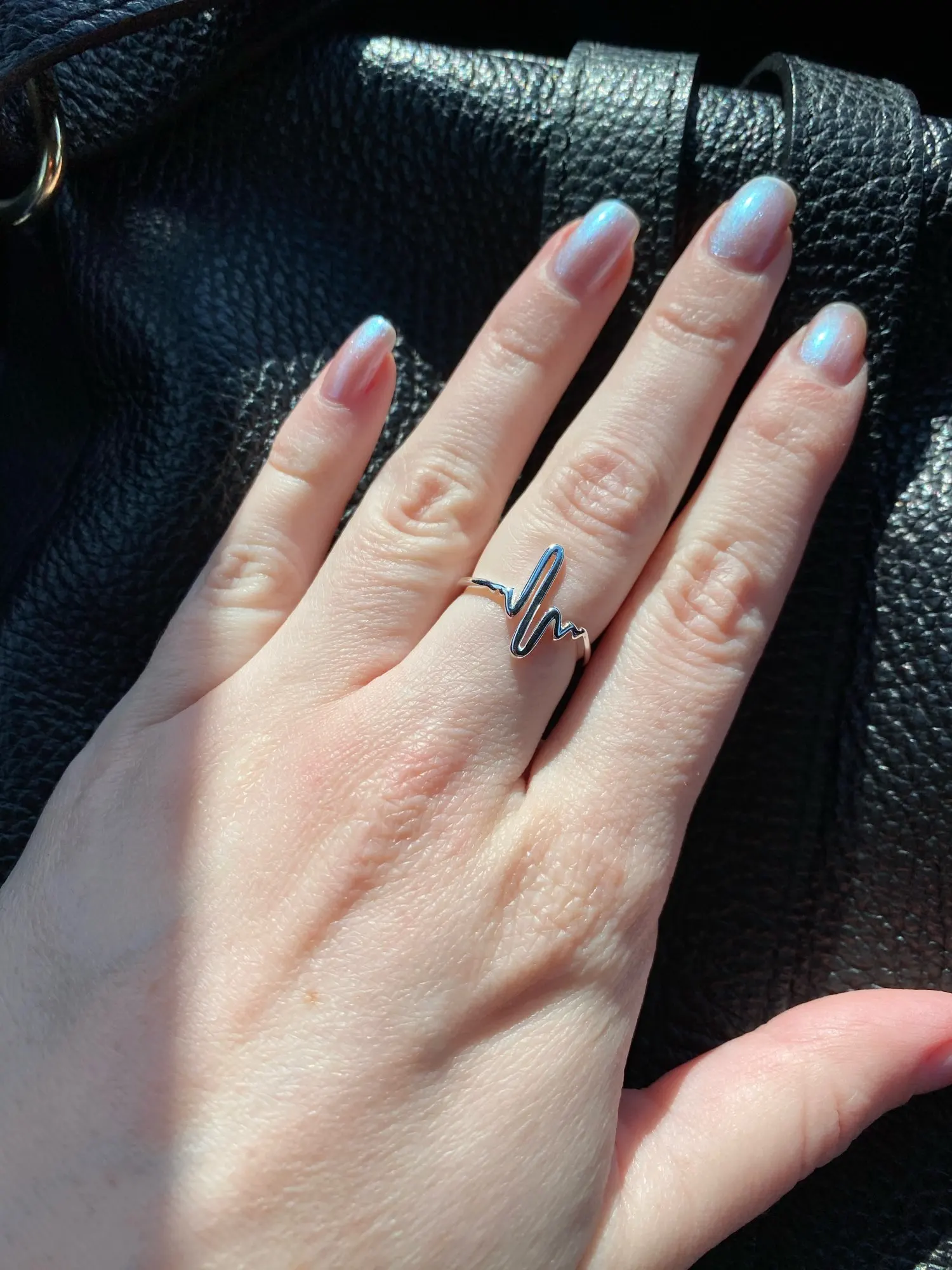 Кольцо из серебра 925 пробы, с волнистым сердцебиением