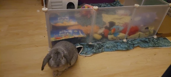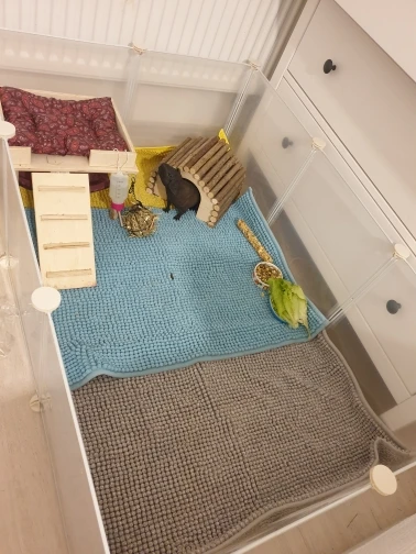 Моему кролику это понравилось, он позволяет ему быть в большем пространстве, и он может иметь все свои игрушки, кровать и угол, не теряя места для бега, вероятно, скоро я попрошу еще 10, мне понравился материал, это пластик, но у него нет стержней и вино со всеми его разъемами, очень прост в установке.