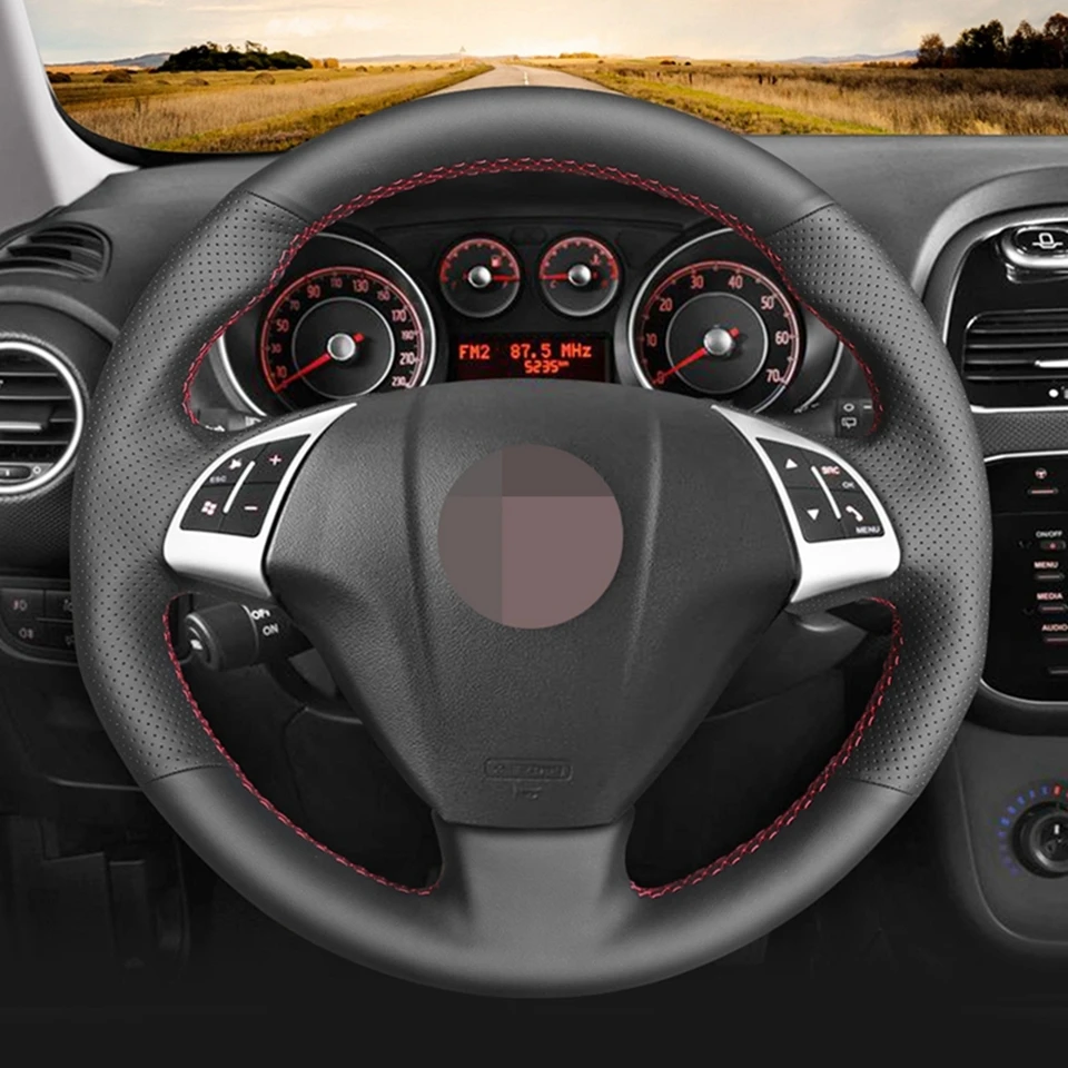 Сшитая вручную черная искусственная кожа Чехол рулевого колеса автомобиля для Fiat Bravo 2007-2015 Doblo 2010-2015, Opel Combo 2012