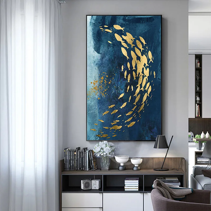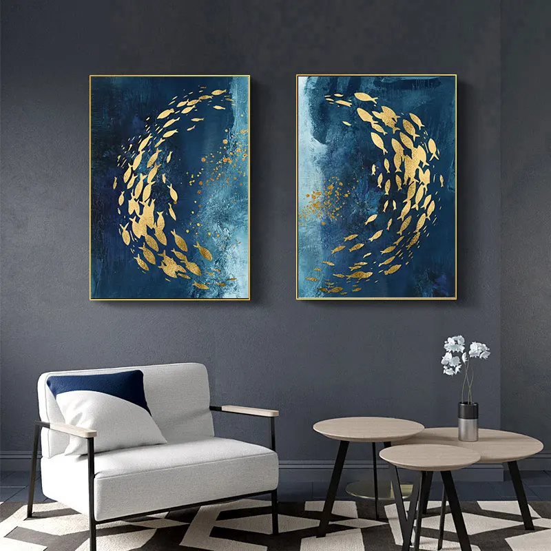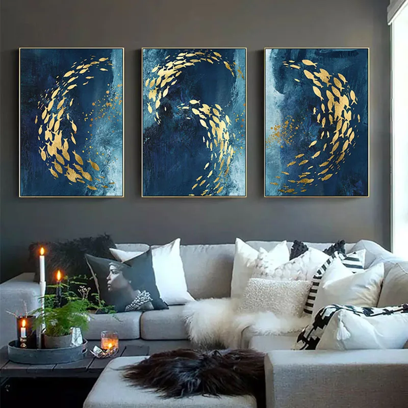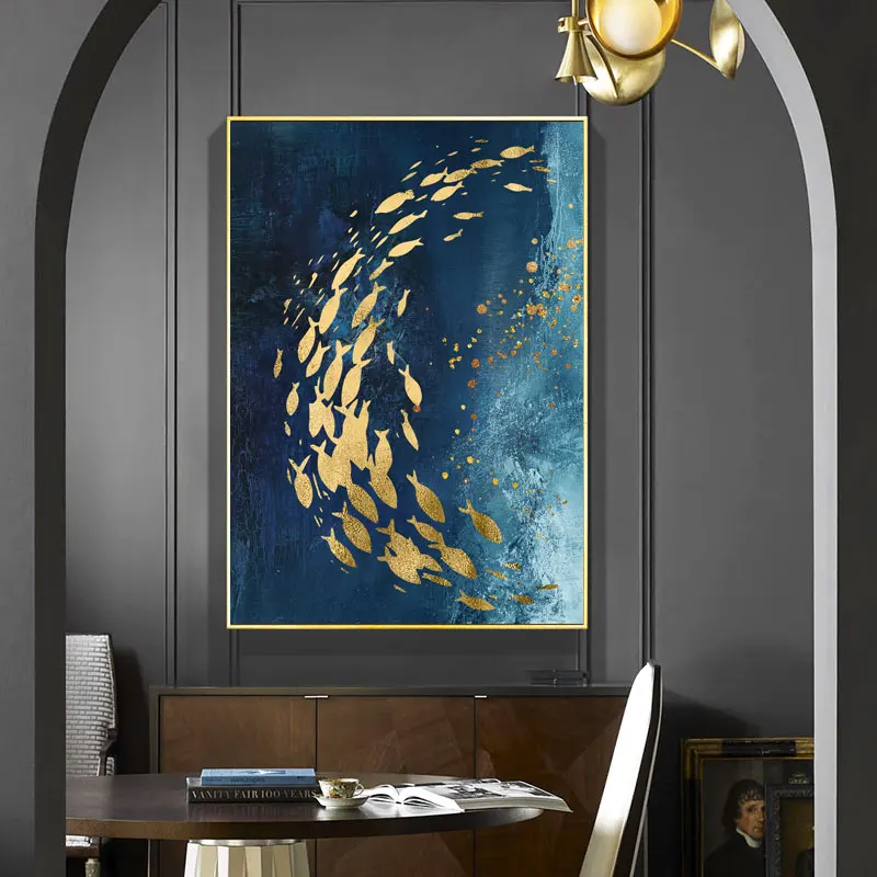 Абстрактная Картина на холсте с изображением голубого золота, плака...