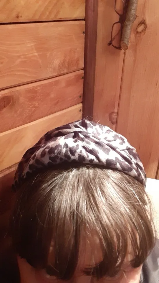 Повязка на голову красивая, немного меньше, чем пятнистая, но я в ней без остановок. Рекомендуем! :)