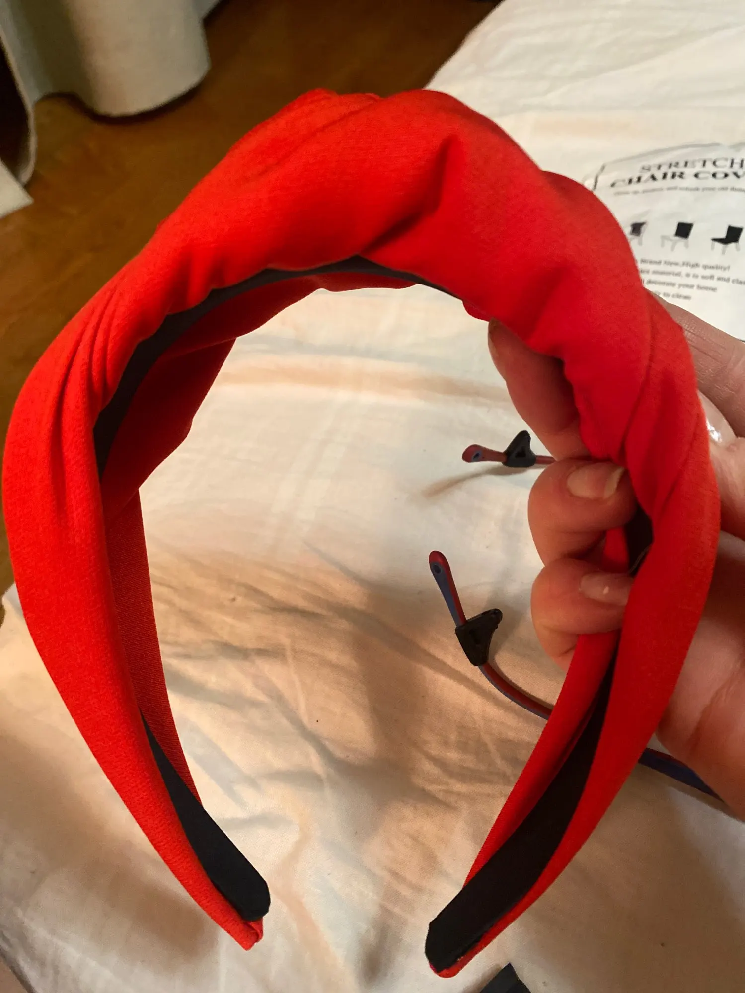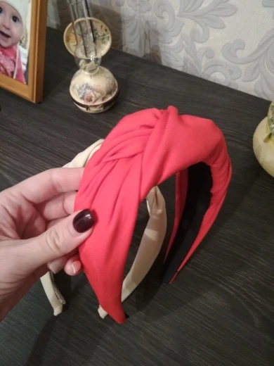 обруч супер. узелок объемный. на голове держится хорошо, не давит. цвет насыщенный красный очень красивый. берите, не сомневайтесь
