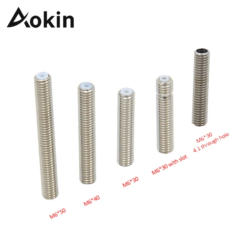 Труба Металлическая для филаментных 3D-принтеров Aokin MK8, горло экструдера, M6, 30/40/50 мм, резьба 1,75 мм, 4,1