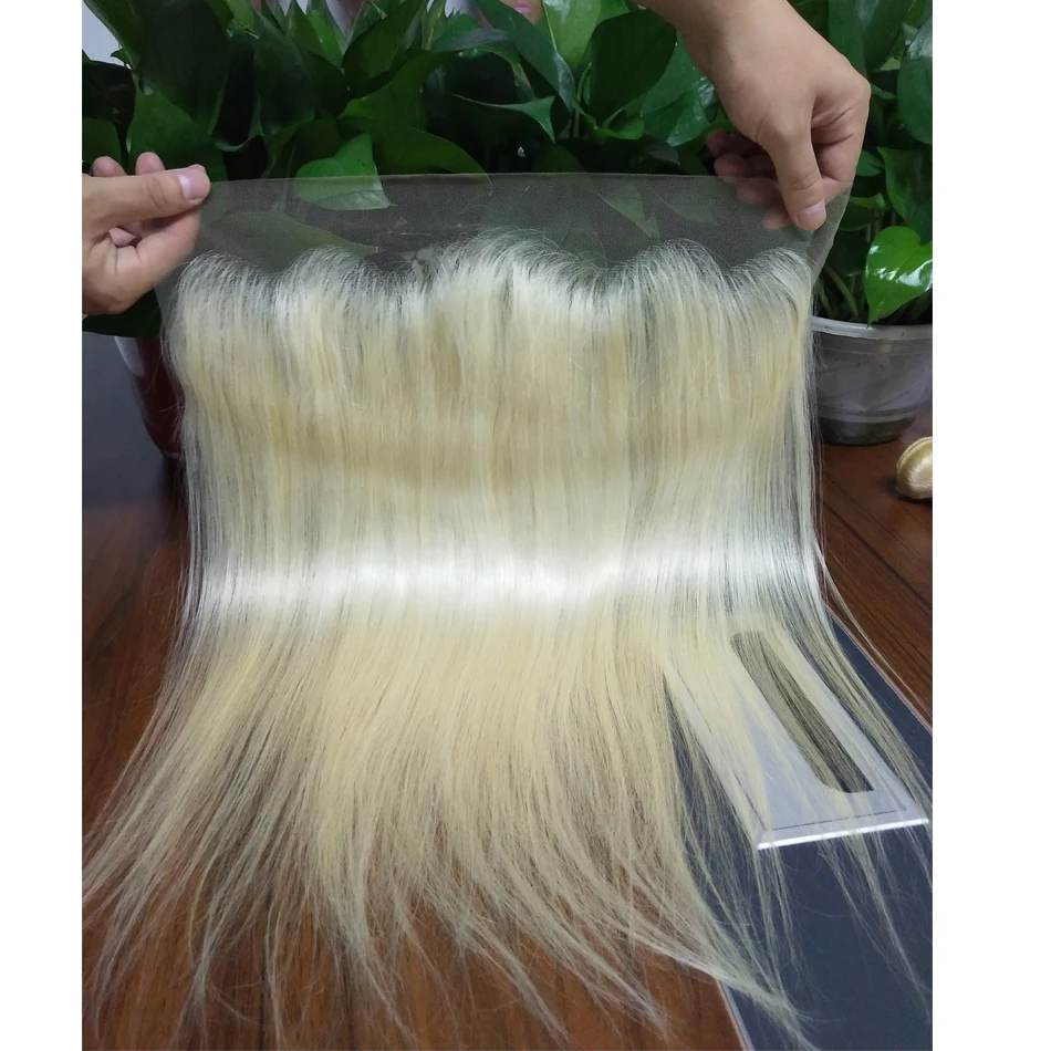 Светлые прямые человеческие волосы, от уха до уха, с фронтальной застежкой, с детскими волосами, 8-20 дюймов, 613