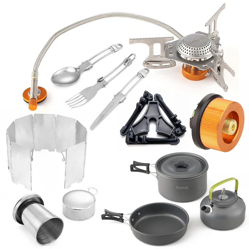 Набор для приготовления пищи Yofeil, газовая плита, лобовое стекло, газовый баллон, аксессуары для кемпинга, оборудование для жарки кухонная утварь котелок кастрюля