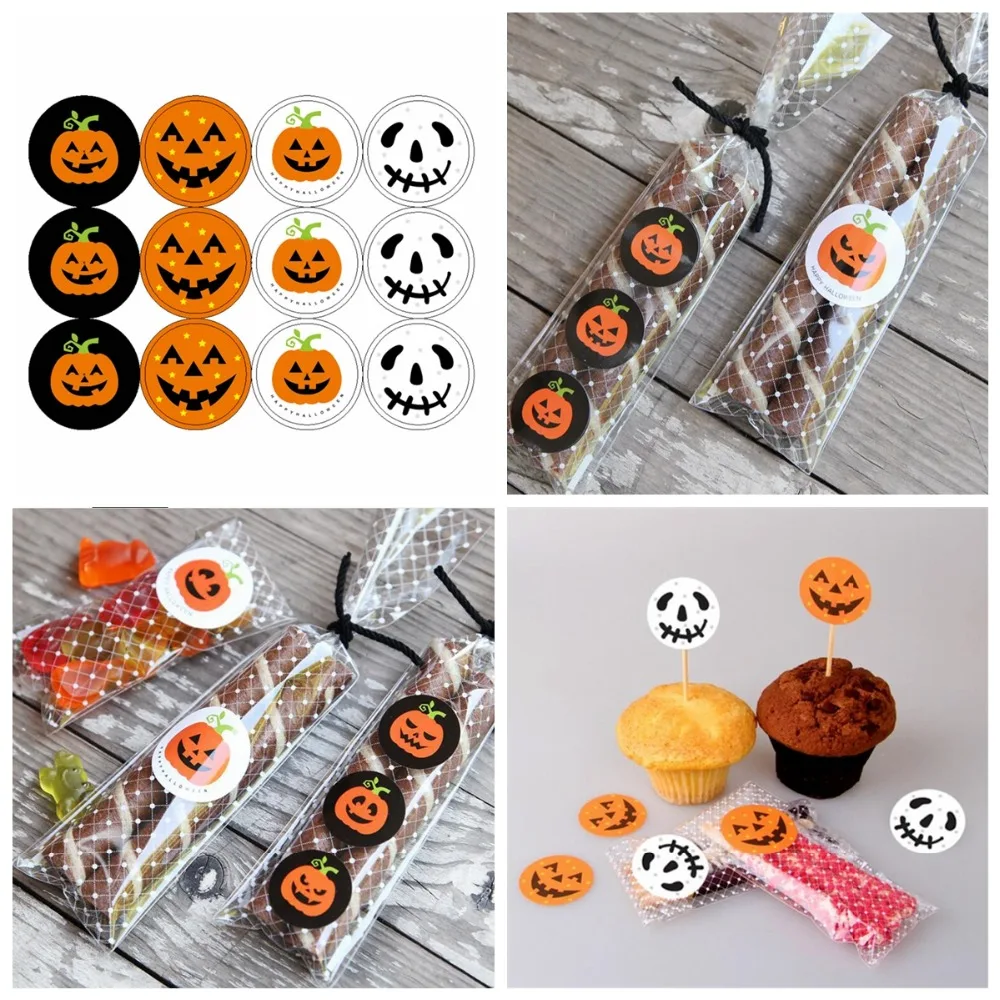 Круглые бумажные наклейки на подарок на Хэллоуин, наклейки на украшения, наклейки на печать, товары для вечеринок на Хэллоуин, упаковка 120 шт.лот