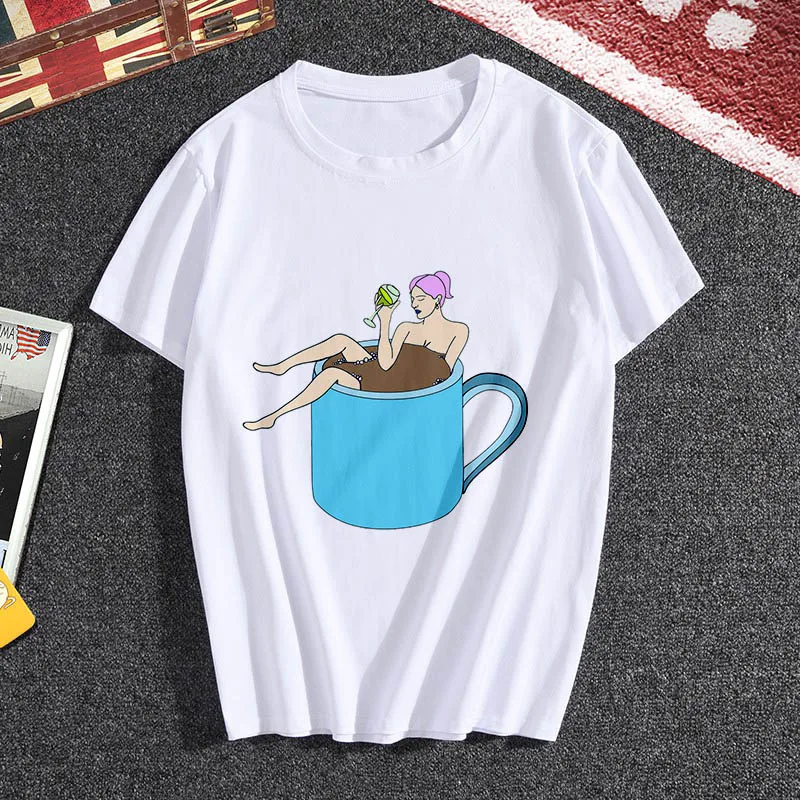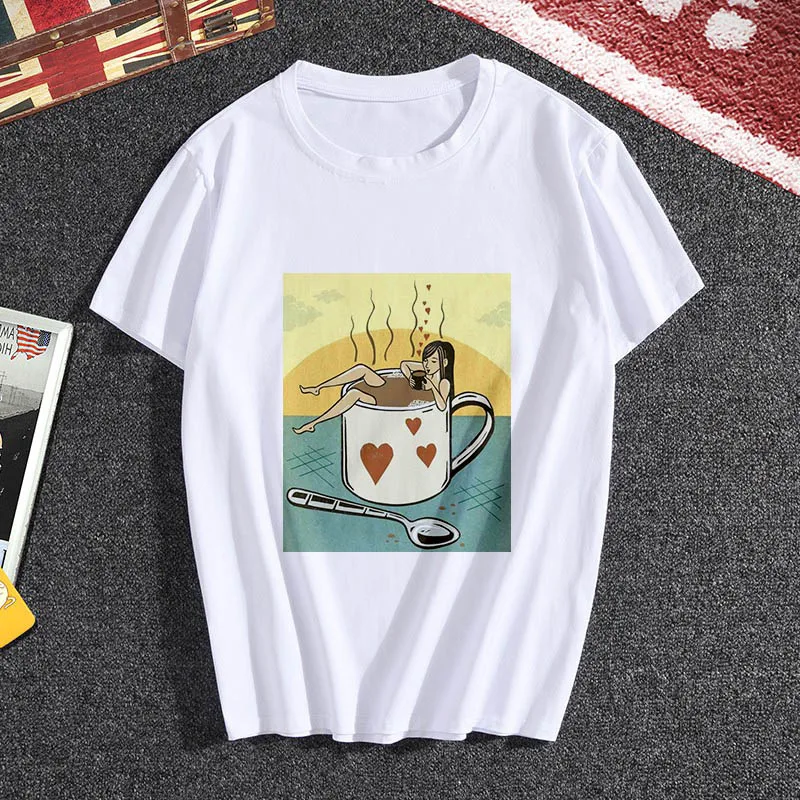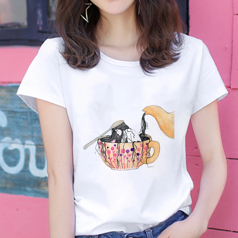 Женская футболка, Новинка лета 2019, индивидуальная кофейная футболка для девушек, эстетичная тонкая белая женская футболка в стиле Харадзюку, топы, одежда