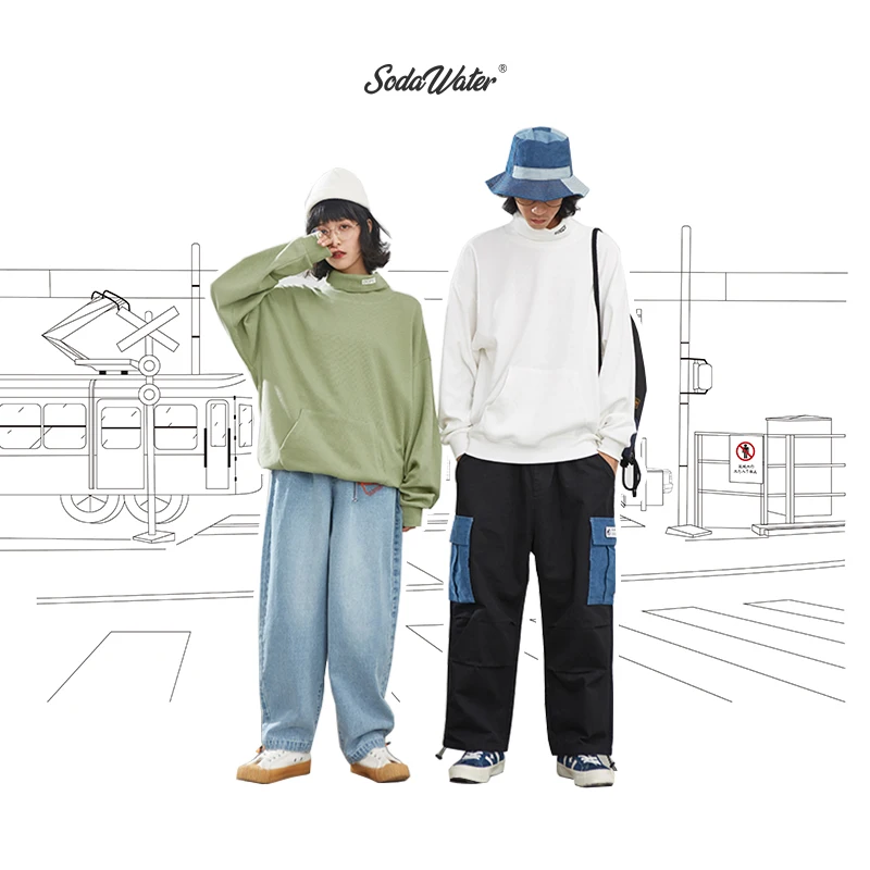 SODAWATER мужская толстовка с высоким воротником, уличный сверхразмерный скейтборд, однотонный, Толстовка для мужчин, Осень-зима, хип-хоп, хлопок, 9622W