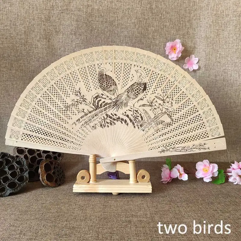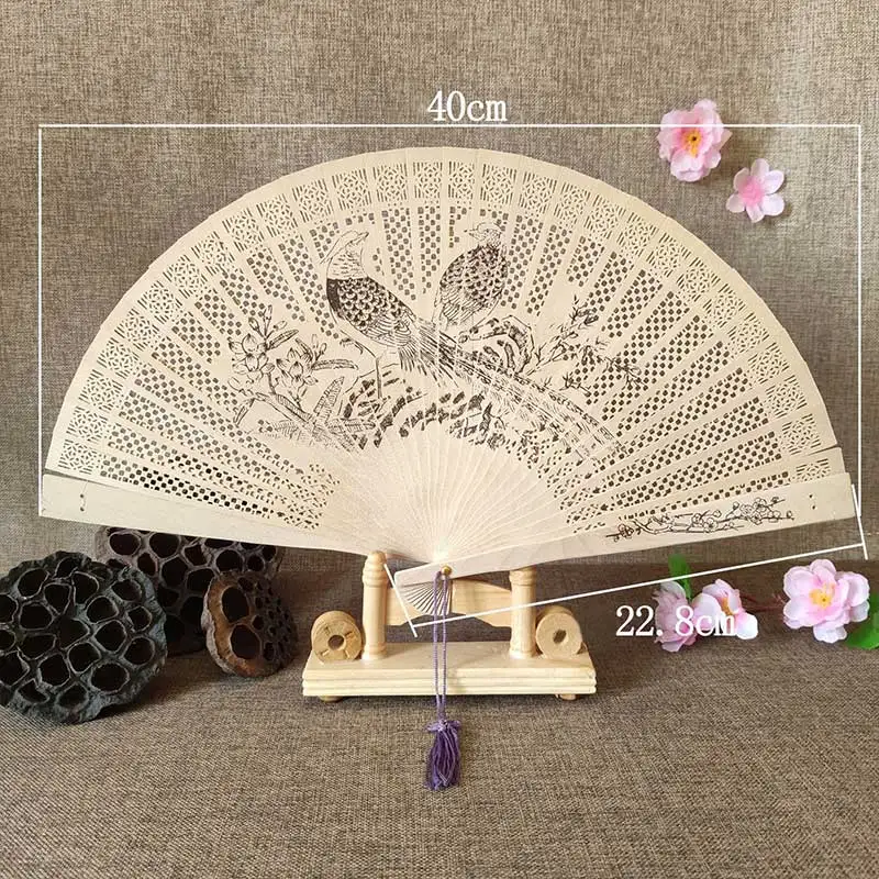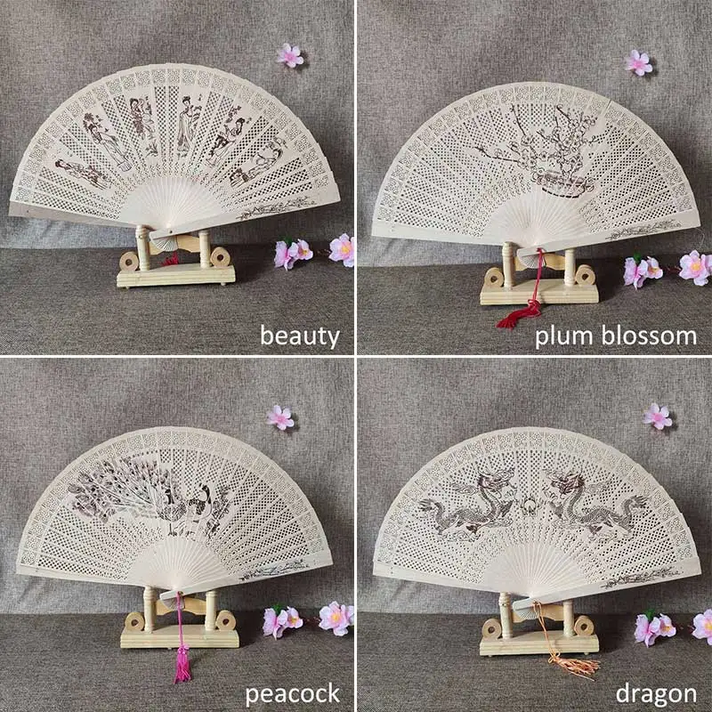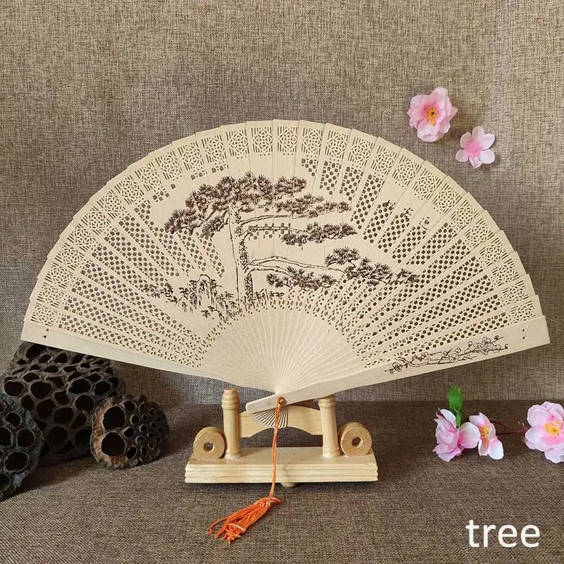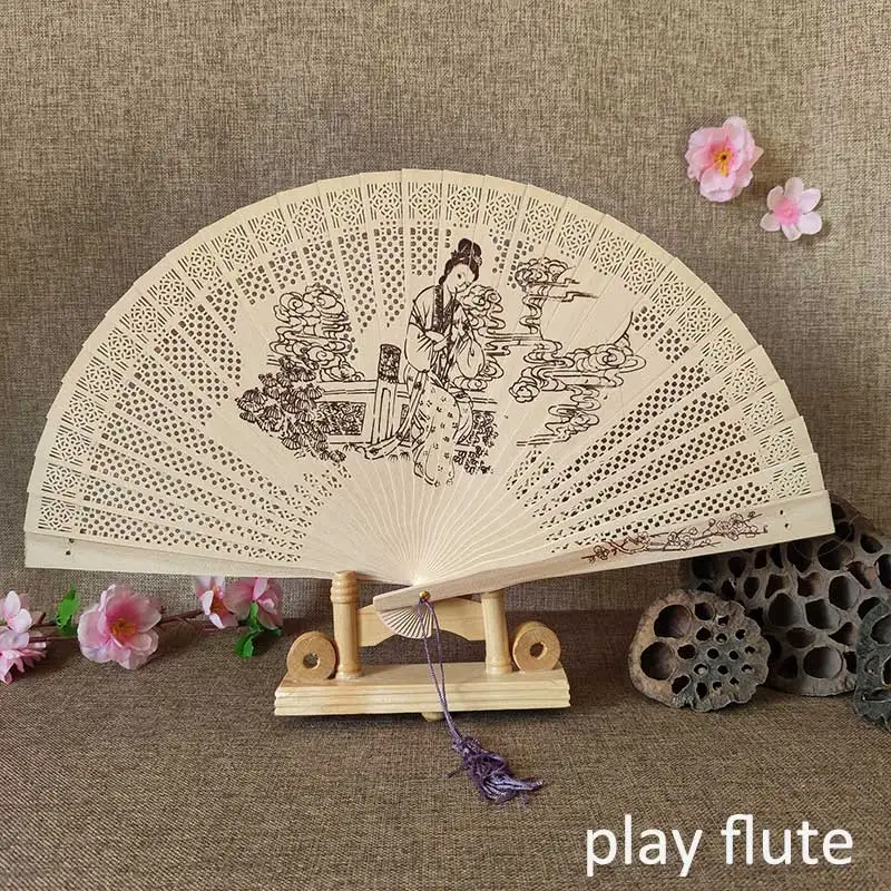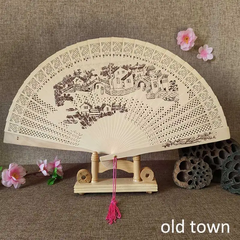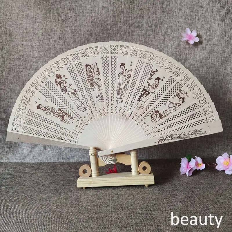 Китайский стиль резьба по дереву печать ретро леди складной веер антикварное рукоделие веер 1 шт. ладан деревянный полый винтажный