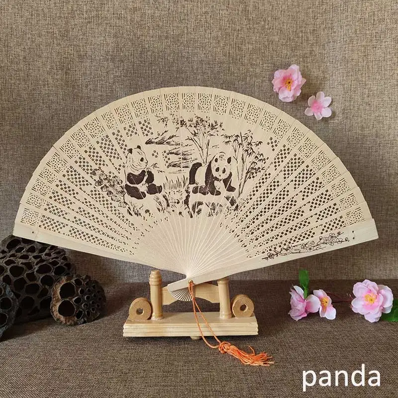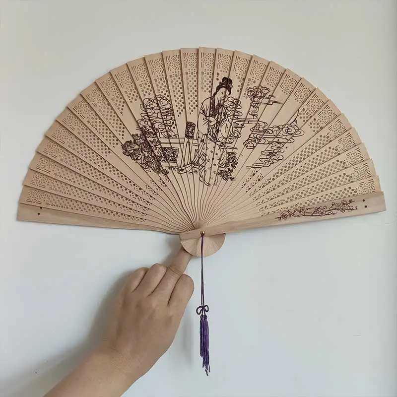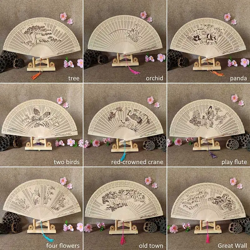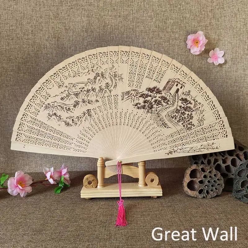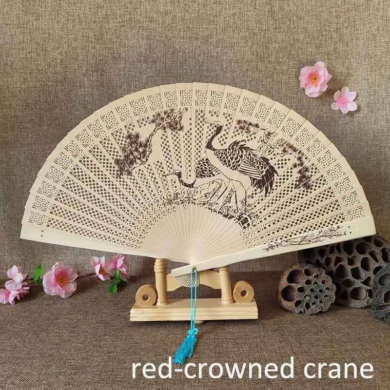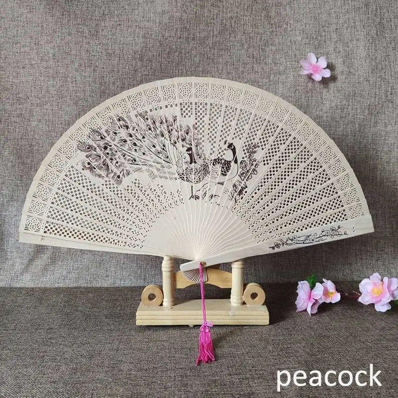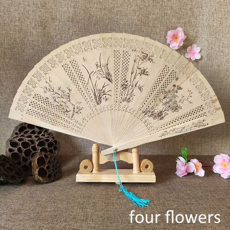 Китайский стиль резьба по дереву печать ретро леди складной веер антикварное рукоделие веер 1 шт. ладан деревянный полый винтажный