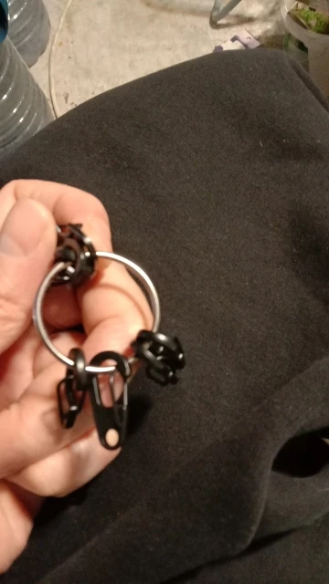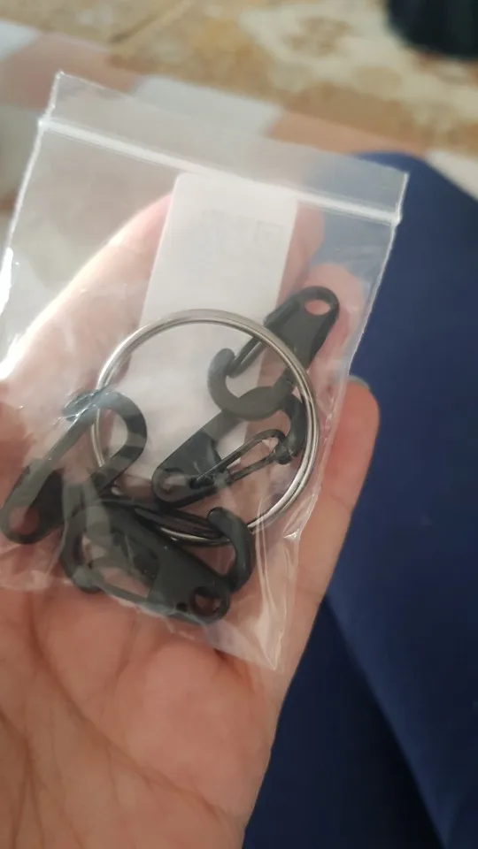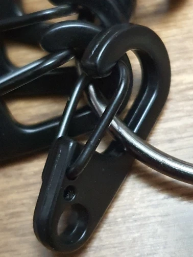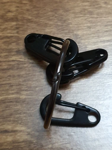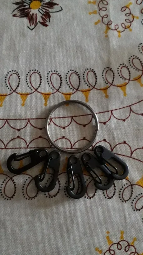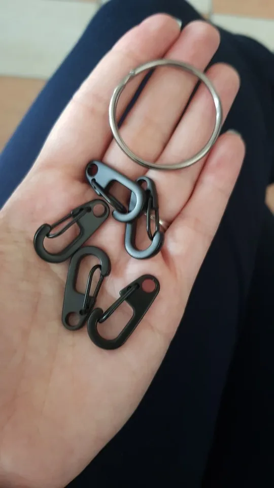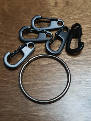 Идеальное маленькое Быстроразъемное кольцо для ключей для моего карманного набора инструментов для повседневного использования, которое я использую для своей работы на фабрике. Я купил второй для своего кольца для ключей, который я использую дома. Один из черных зажимов был неисправен, но я в порядке. Я использовал другое металлическое кольцо, потому что поставляемое кольцо слишком легко открывается, и вы можете потерять ключи случайно. Это все еще хороший продукт по цене, и я рекомендую его.