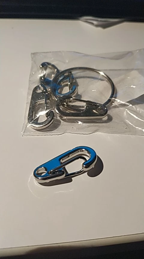 Не плохие карабинчики для ключей, жаль у нас такие не нашел пришлось заказывать. большое кольцо с каким то странным замком.