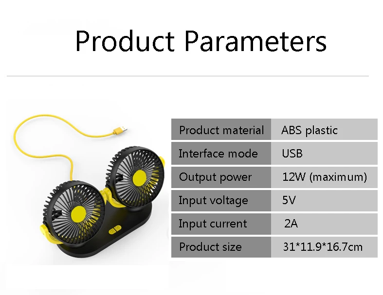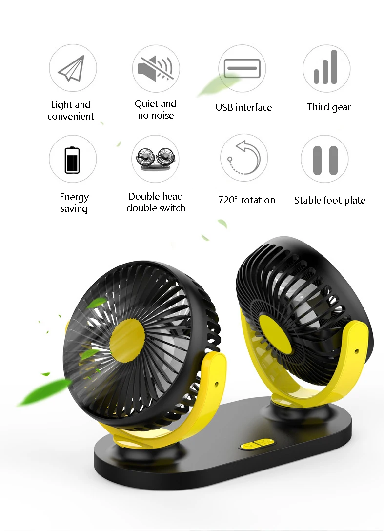 Портативный автомобильный мини-вентилятор, 12 В, 24 В, 3 передачи, 360 градусов