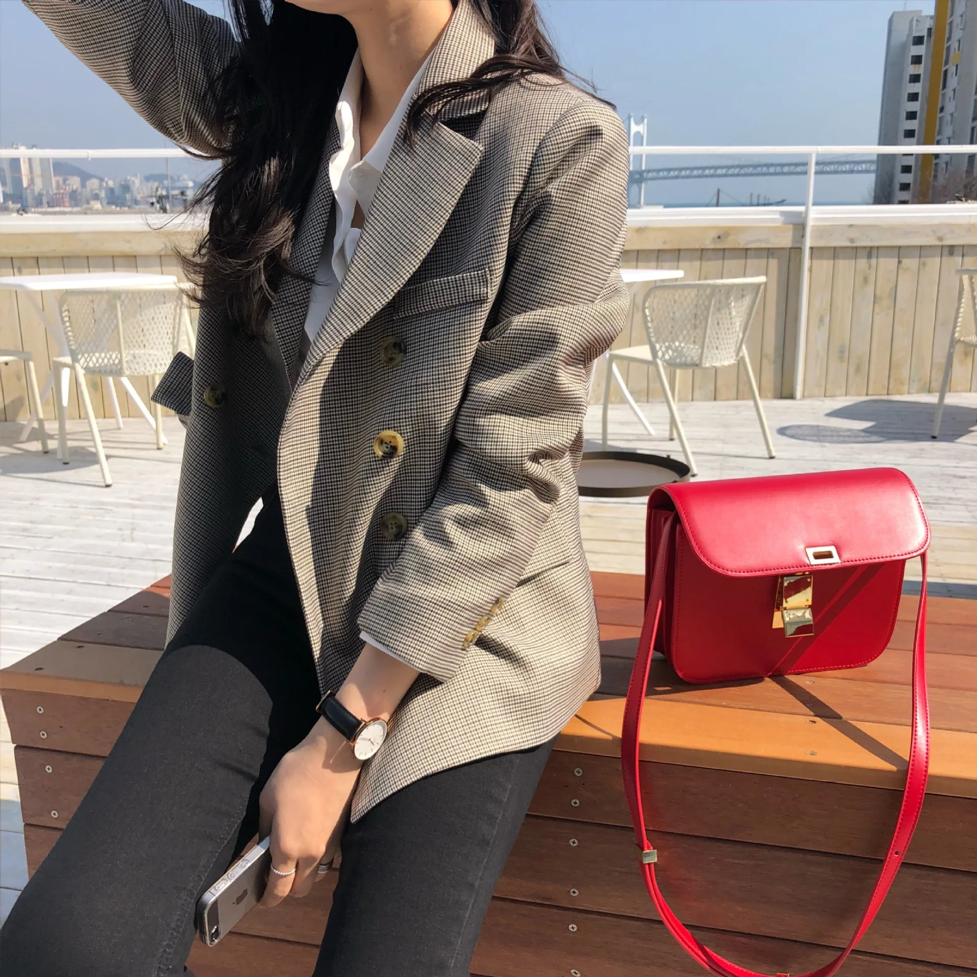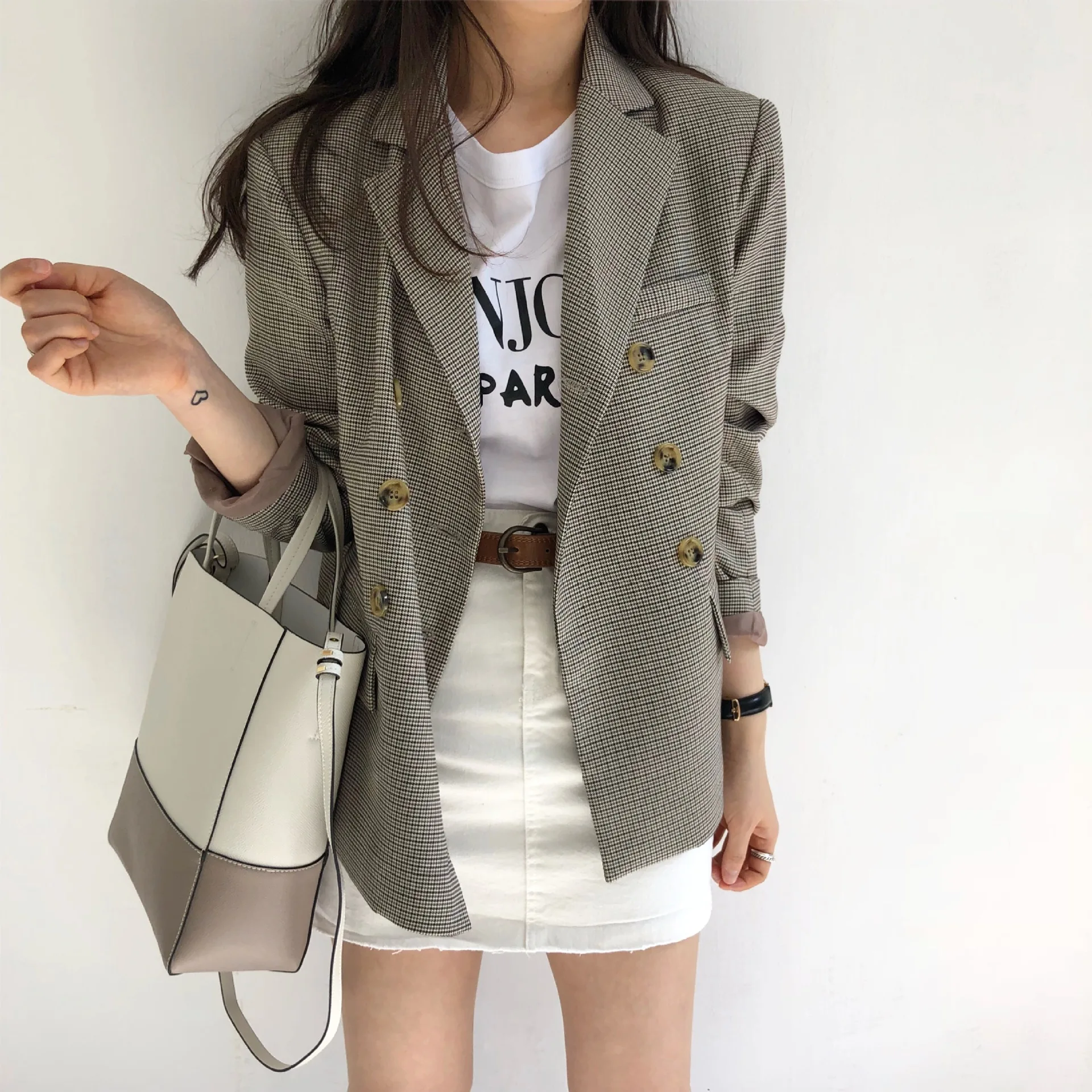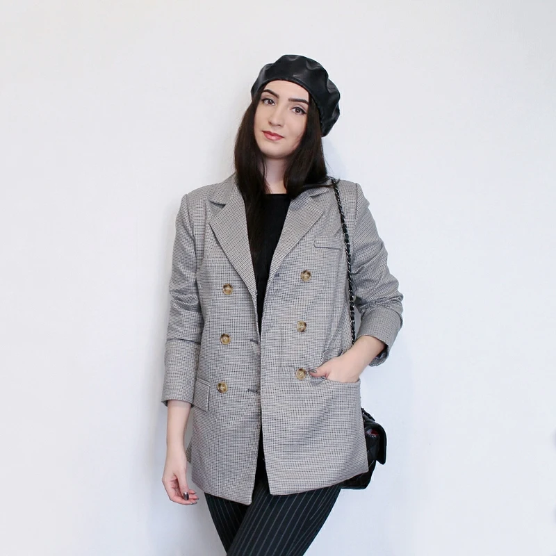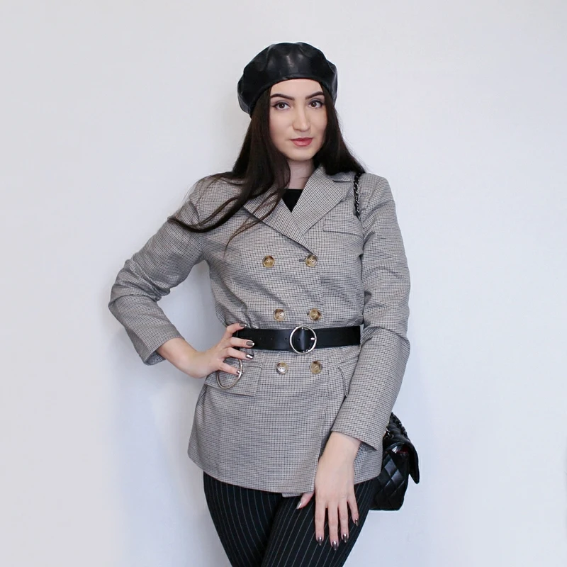 Женский пиджак Bella philosophy, классический двубортный пиджак в клетку, пиджак с воротником, модный пиджак, 2019